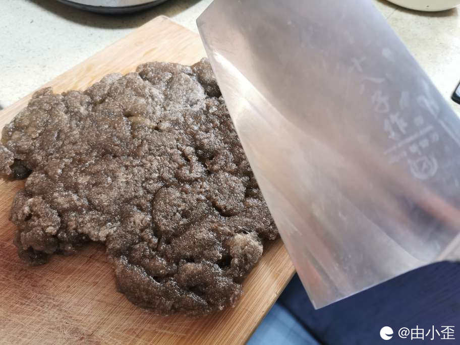 用过水的菜刀,切块,一块一块又一块。