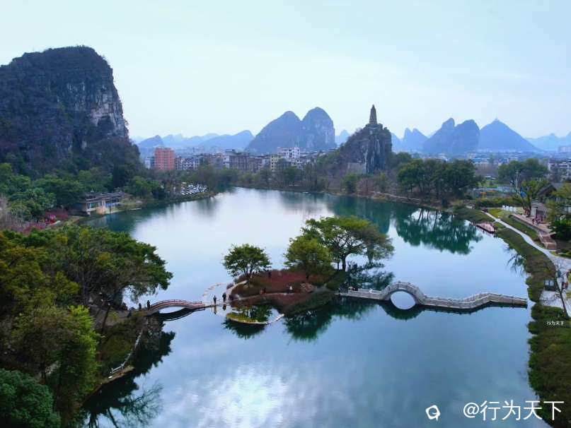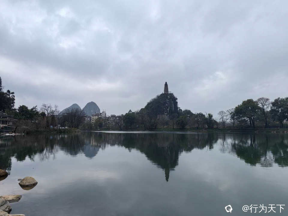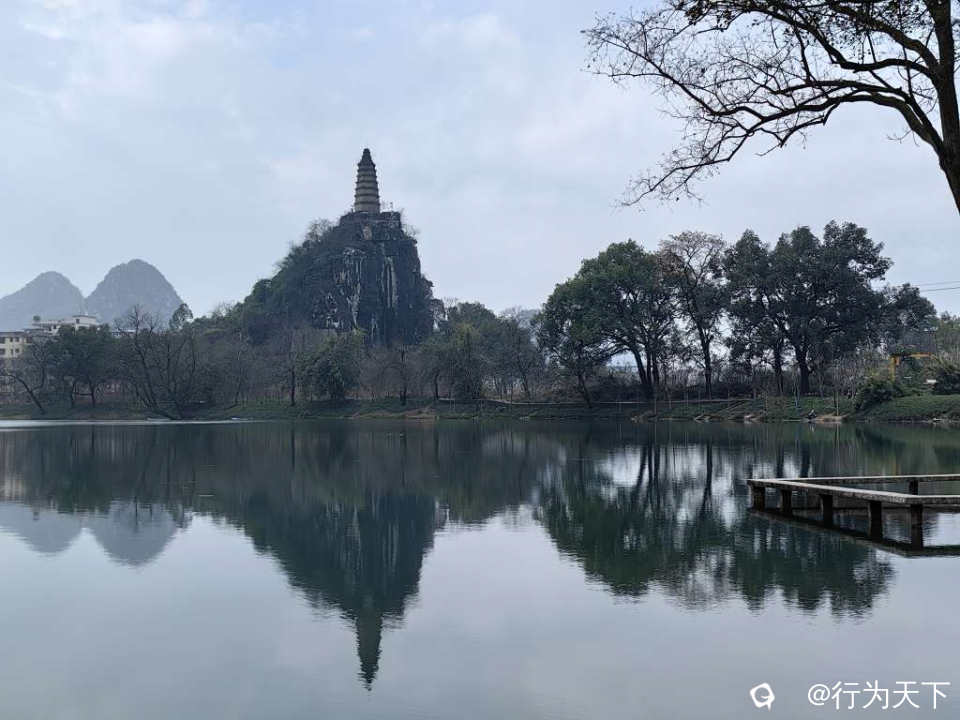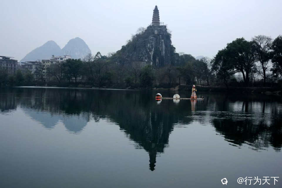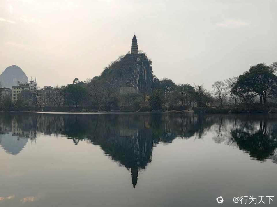 徐霞客《粤西日记》谓“若岐若合,亭亭夹立,盖以脆薄飞扬见奇”。这里也正是桂林老八景之一:塔山清影。