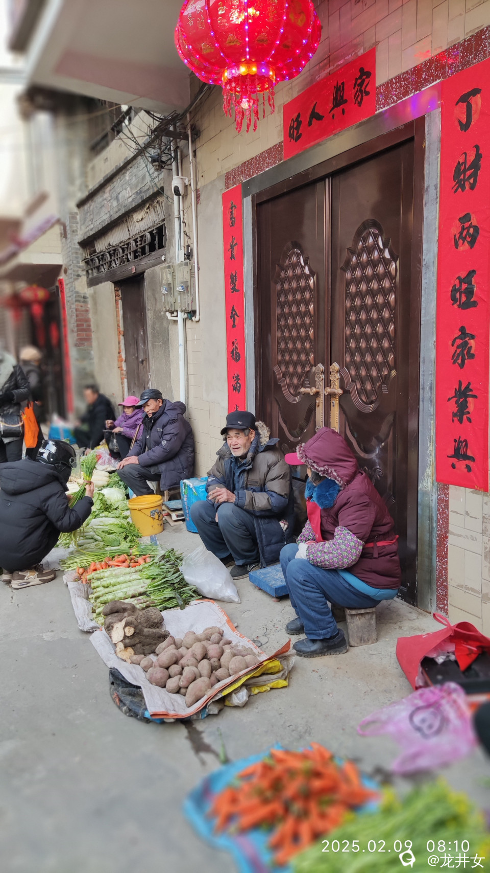 今天阔时蛮冻手,还好出了太阳,慢慢暖和起来。人家的门口,红春联红灯笼,弥漫浓浓的春节氛围;黄狗,还是陪伴主人来卖菜。赶圩,看人间烟火味。