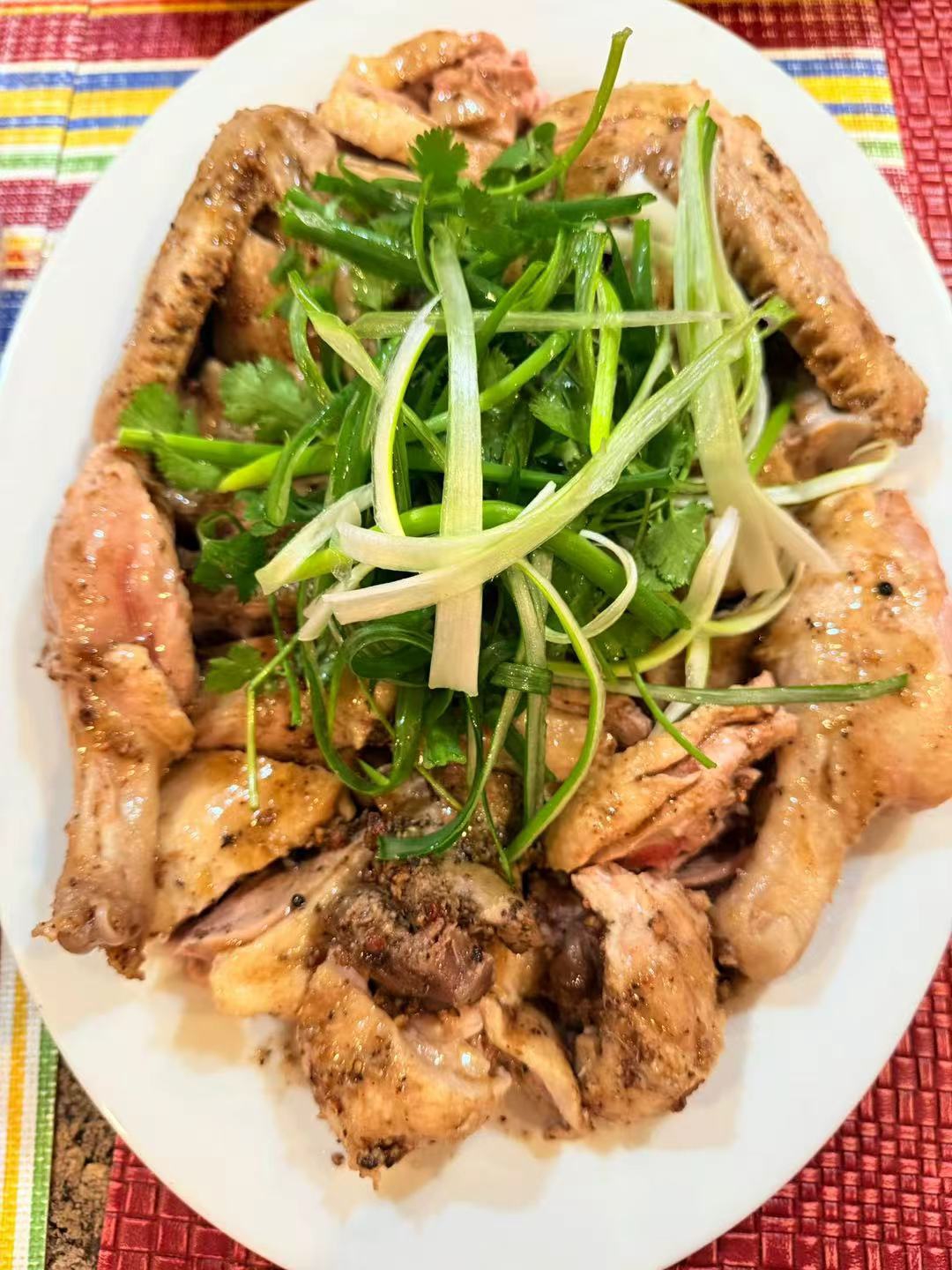 好大一盘的烤猪,皮焦肉靓的。每回聚餐,这个朋友都会做一份烤猪,我夸他家的烤猪水平不逊餐馆,味道正宗。
