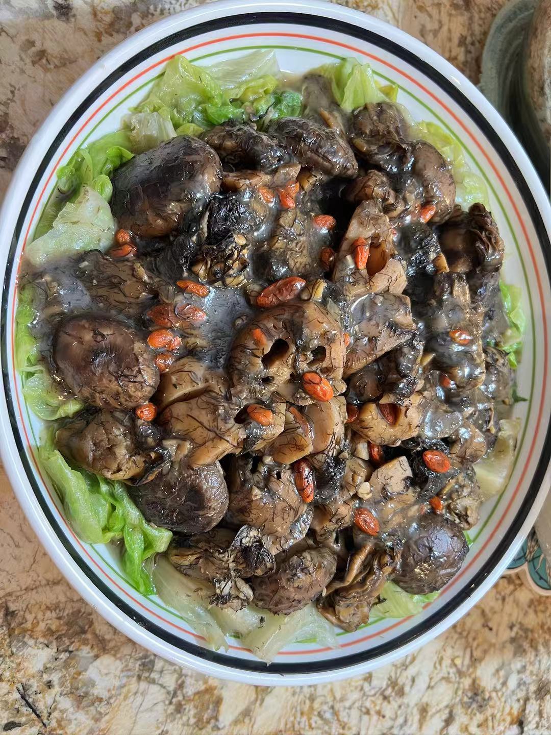 蘑菇鲍鱼发菜,寓意一生饱余,发财发财!