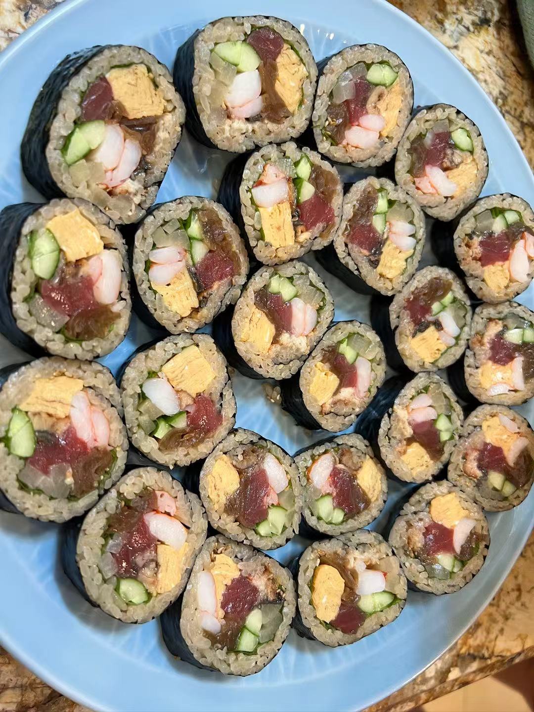 寿司,我猜可能 是在餐馆定的。
