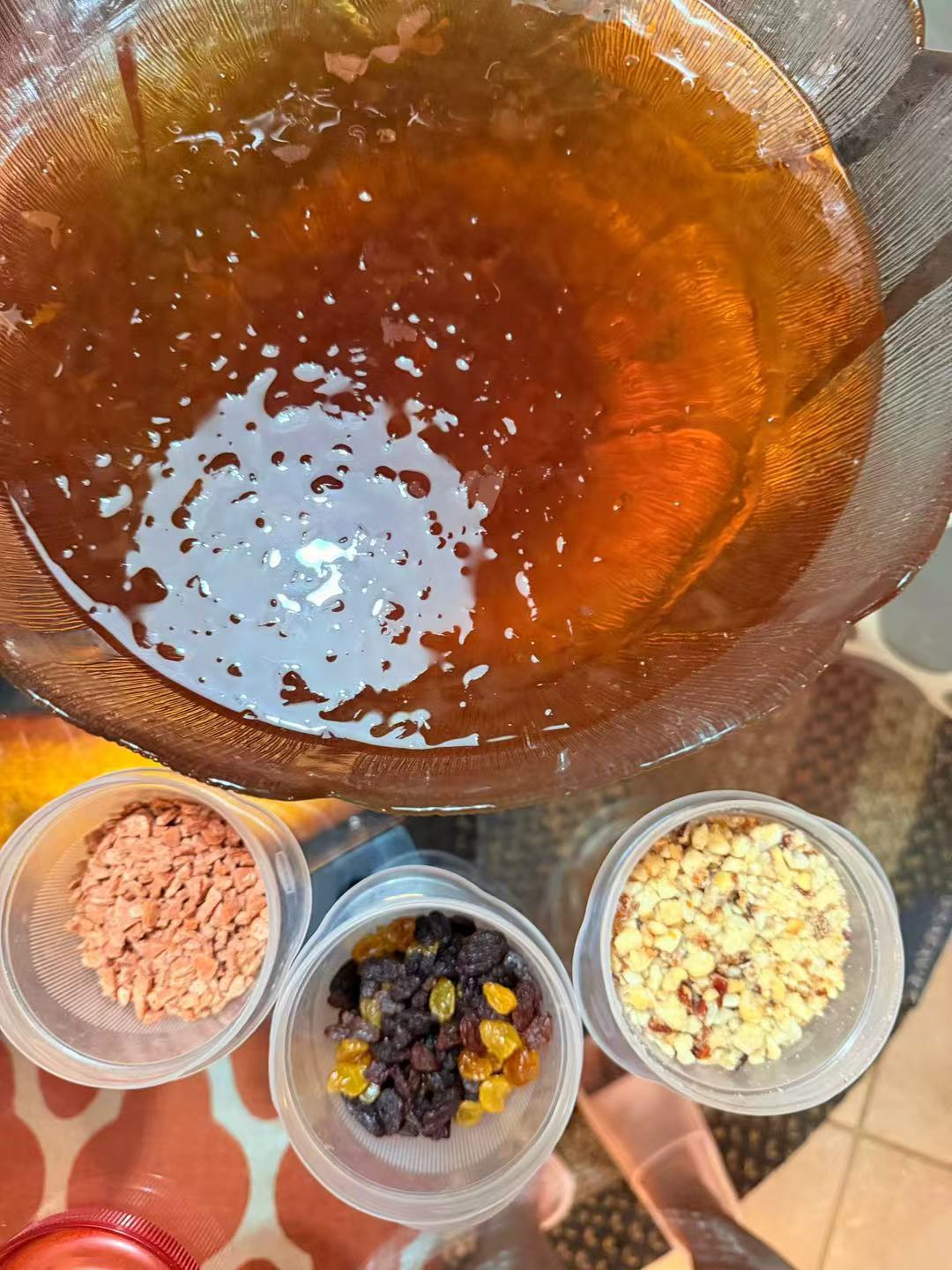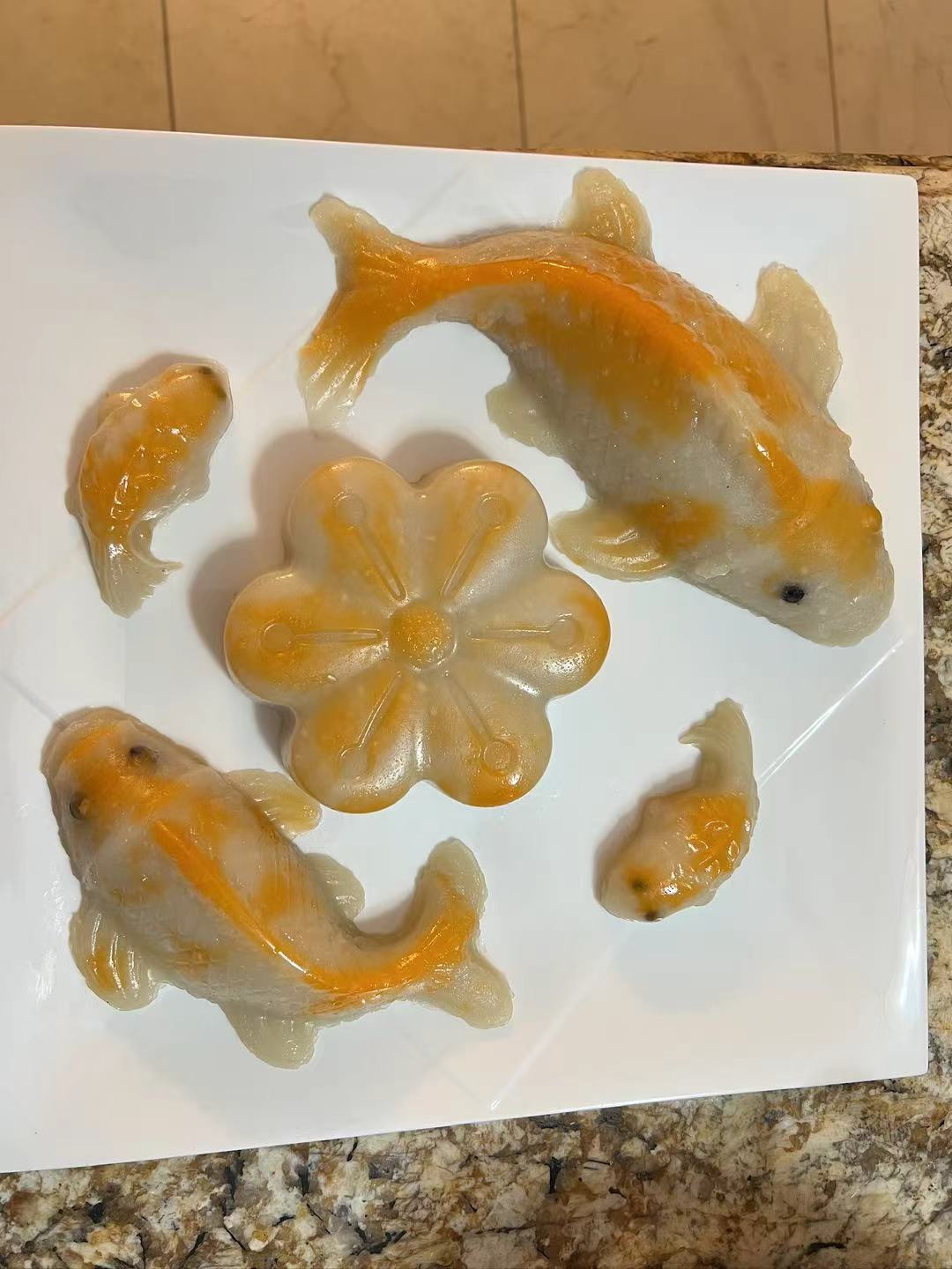 这是我女儿做的椰奶年糕,寓意锦上添花,年年有鱼。每年春节她都会做一盘这样的年糕。女儿在制作年糕时,我曾跟拍过,制作过程很费功夫和考验耐心呢。