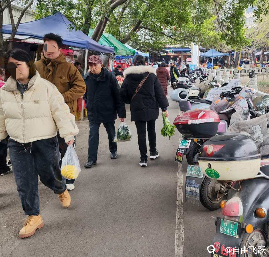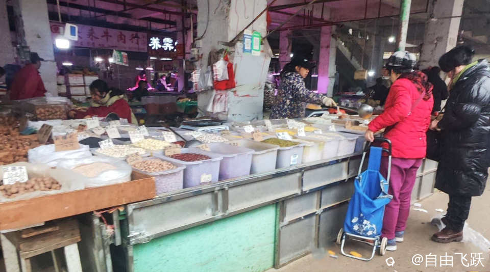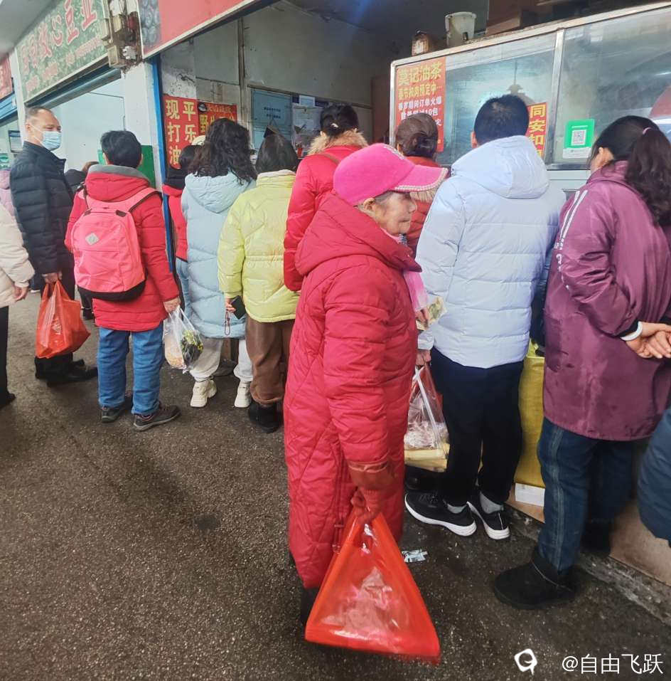 西山早市:西山早市里人流密集,看来大家的年货消耗干净,都需要补充了,中间有一家店铺居然要排长队,猜一下是在卖些啥?