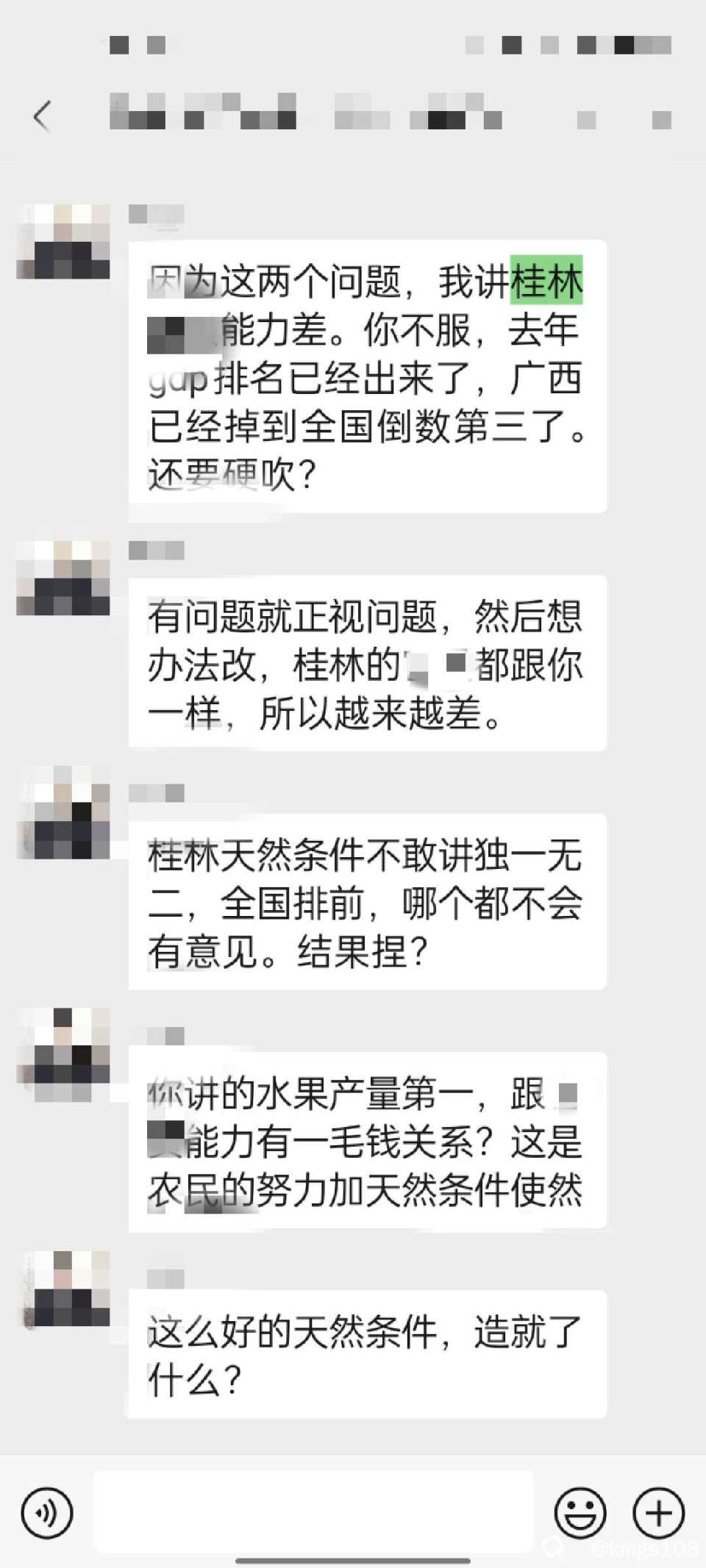 一个珠三角打拼的桂林老乡,经常在老乡群中谈论天下大事,甚为推崇深圳,他说桂林从经济医疗教育各方面全面落后,有得天独厚的自然条件,水果种植也搞不好,还比不过四川。