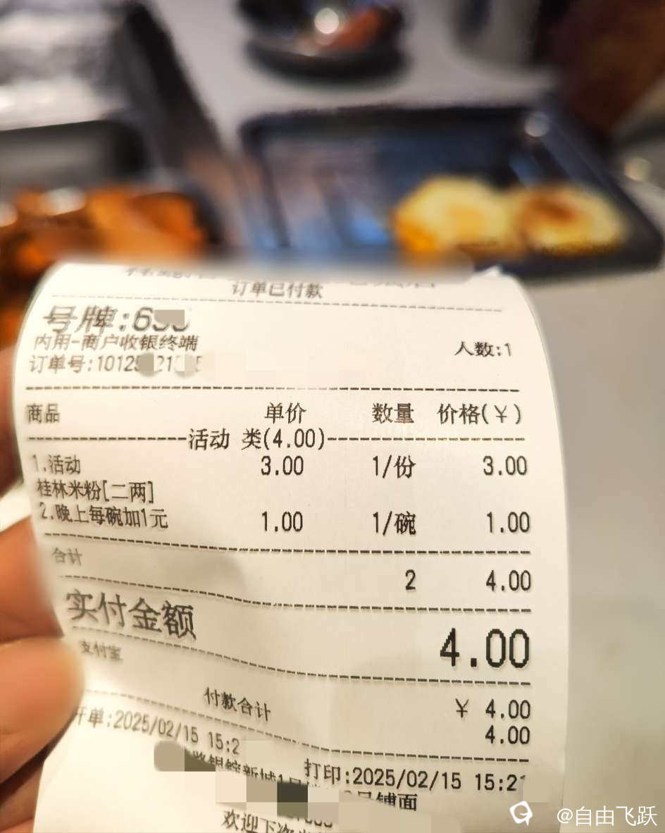桂林市内满街都是米粉店,但是打“文化馆”牌子和“三块钱"广告的少见,今天从瓦窑回家时,被这家店门口的“文化馆"牌子和“三块钱”广告吸引,进去要了二两卤菜米粉,实际是收4块钱(下午15点多被当作晚上多收1元,所谓的白天不懂夜的黑),觉得这还算优惠价,广告虽然有点虚,一块钱也不多。