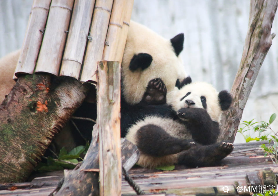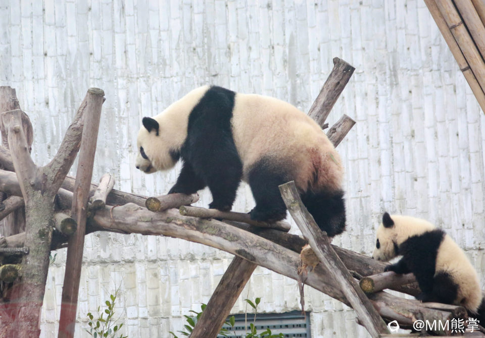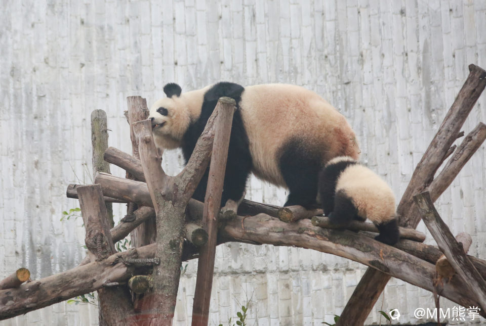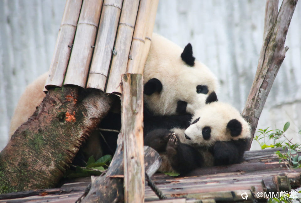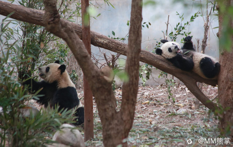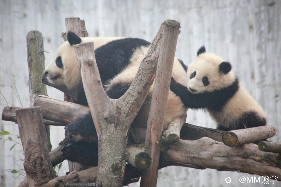 2025年春节期间拍的几组大熊猫花式带崽瞬间。