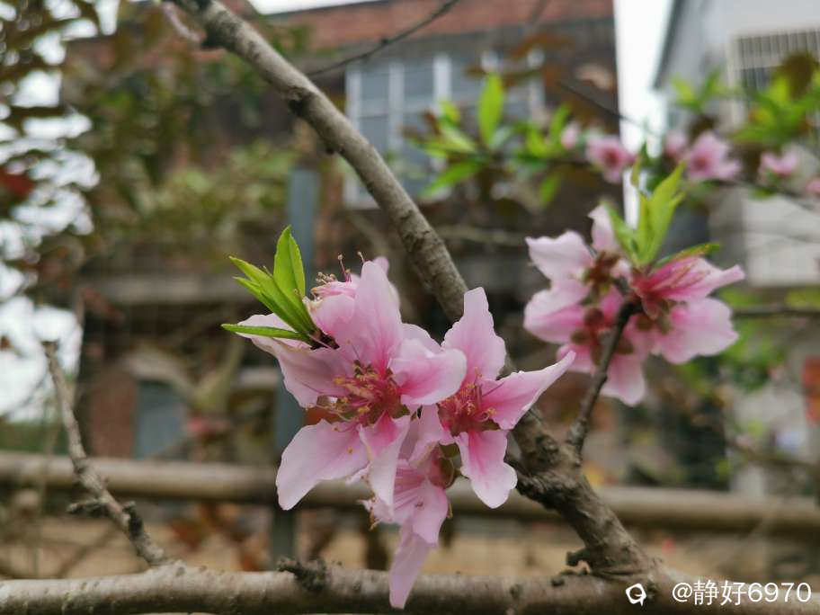 这里不是很冷,穿一件衣服加背心。一路上桃花朵朵开,五颜六色的三角梅伫立在围栏侧迎风招展,似乎在欢迎我们的到来。