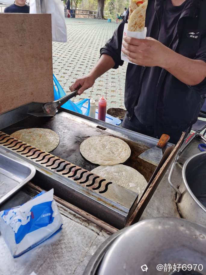 吃完菠萝感觉没饱,又去买了一个手抓饼和虾子糯米团,下午3点多钟才吃午饭,真的是饥不择食,这个时间段吃什么都觉得是美味可口的。