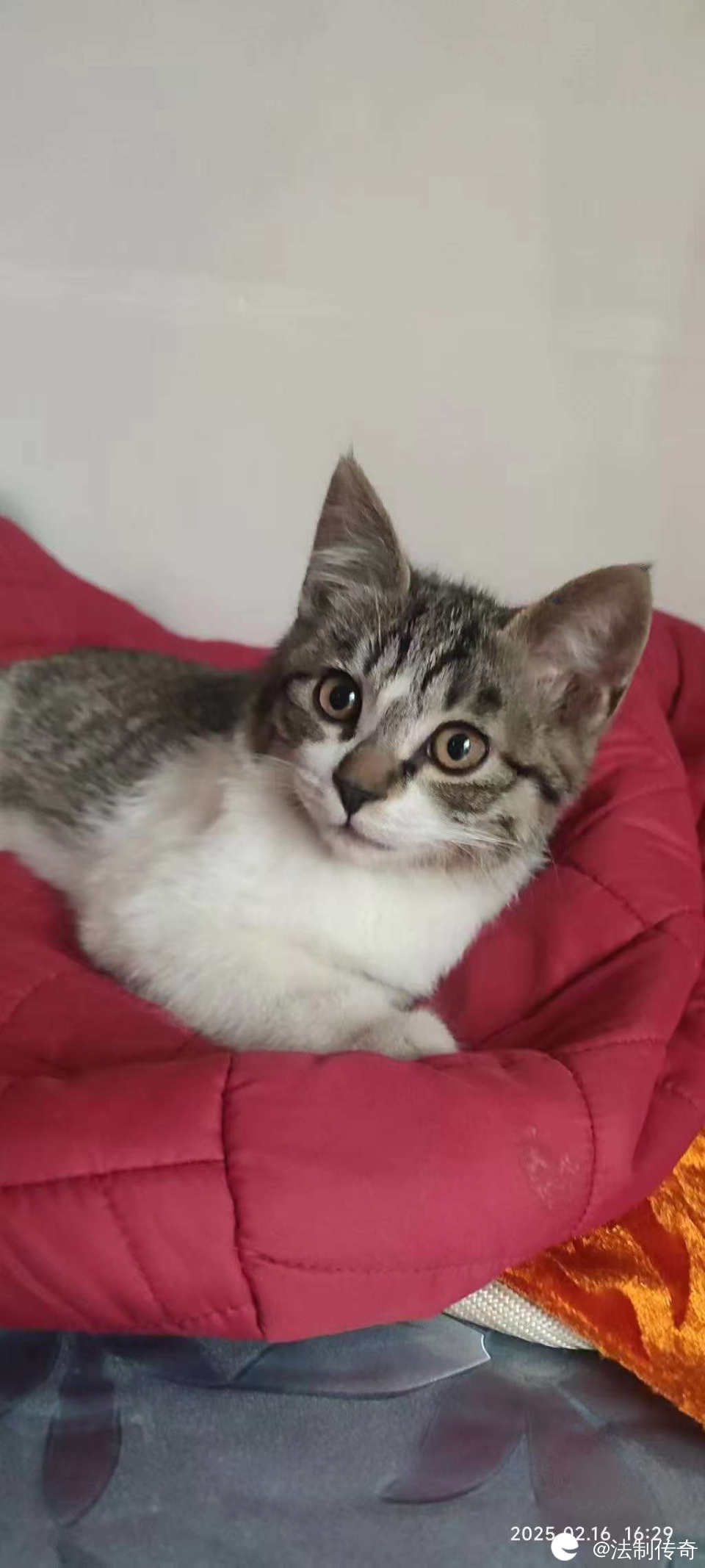 捡到一只小猫咪,欢迎有爱的家庭来领养领养要求:1、科学喂养、不喂毒猫粮,要封窗2、领养后不能随意抛弃猫咪生病及时带猫咪就医;3、真心喜欢猫咪,理性养猫,不是一时冲动和新鲜感,猫咪不可能不掉毛,要做好心理准备,不能因为掉毛就弃养,更不能虐待猫咪!4、按时疫苗驱虫。领养电话:13607801933