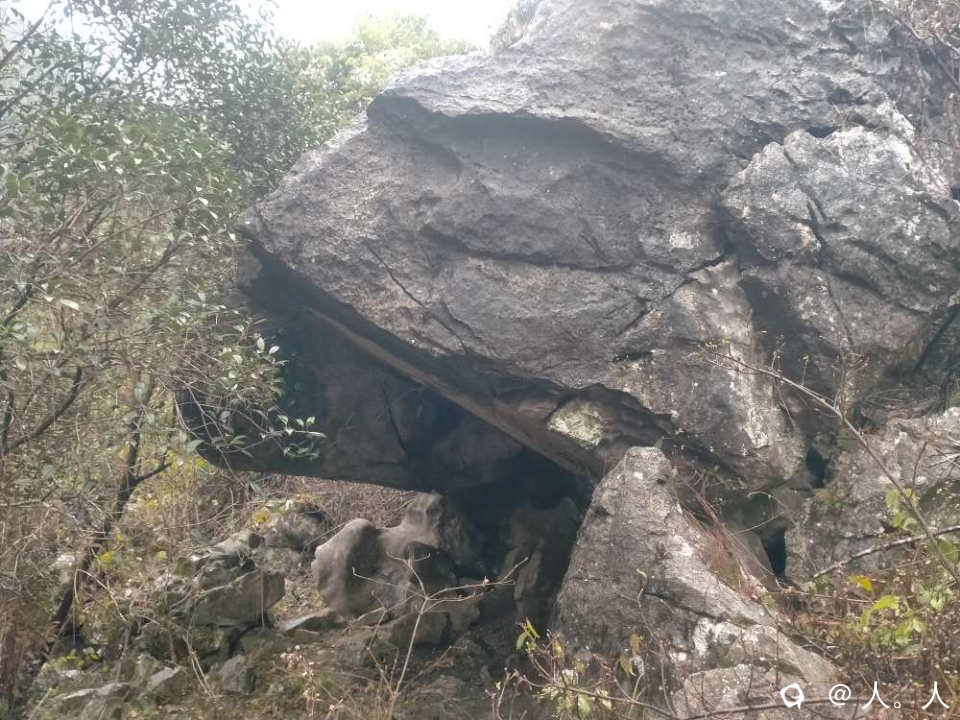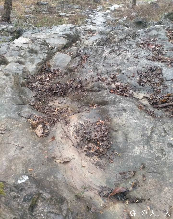 感觉太好就容易大意,上山没多久一脚蹬在了半圆形石槽中间的腐叶堆,身体旋转90度后,屁股着地顺着石槽向下滑行一米,哈哈,卧槽了。