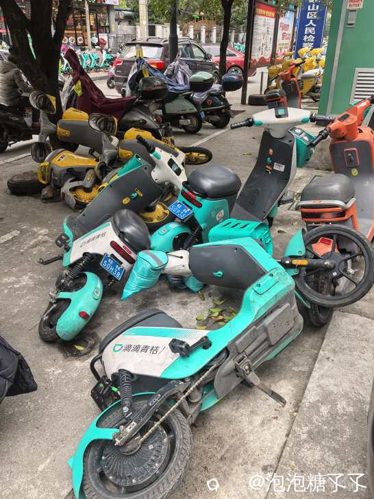 店铺门口乱摆放的公益电动车,有关部门能否管理一下?!每天乱七八糟,横七竖八,东倒西歪,如果不停自白线区内,每架扣100元,还会出现这种情况吗?旅游城市的全民素质问题,合规的管理制度是共存的。