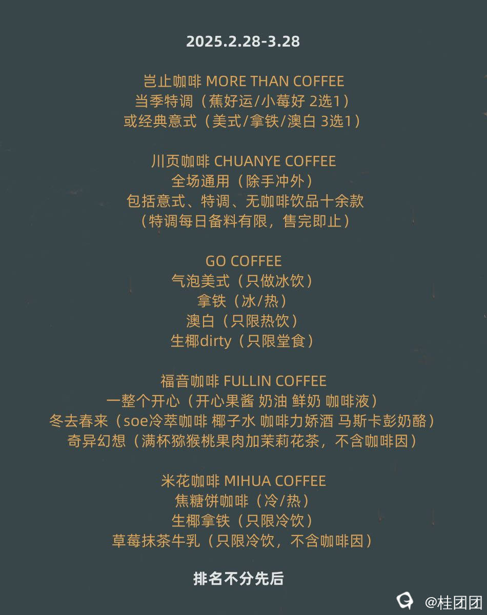 在繁忙的城市中有一种快乐,叫“咖啡地图”68元享5家店5杯,经典特调任选走进风格不同的店,来杯咖啡会让人放慢脚步全心全意享受生活的点滴乐趣2025年2.28-3.28,桂林生活网“桂林咖啡地图”4.0上线线上预售已经开始,扫码最后一张小程序二维码即可购买