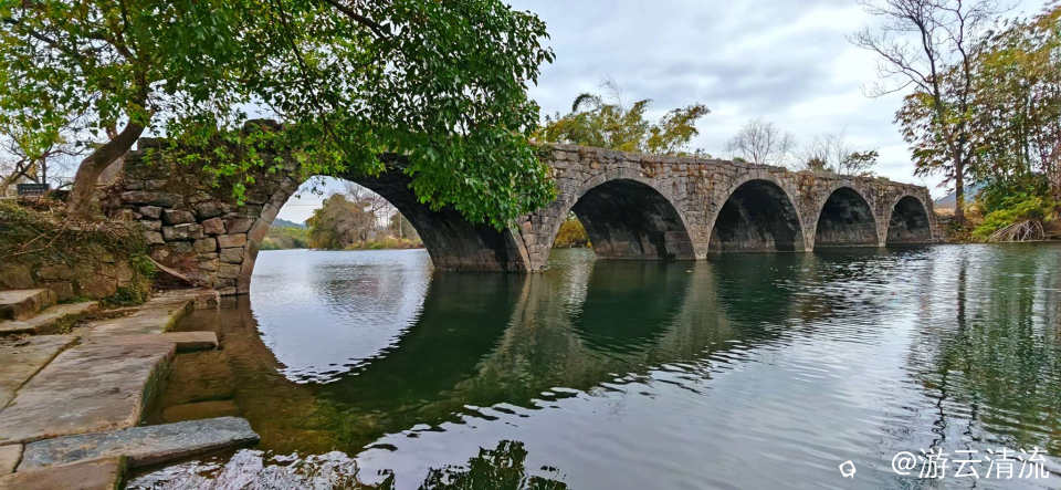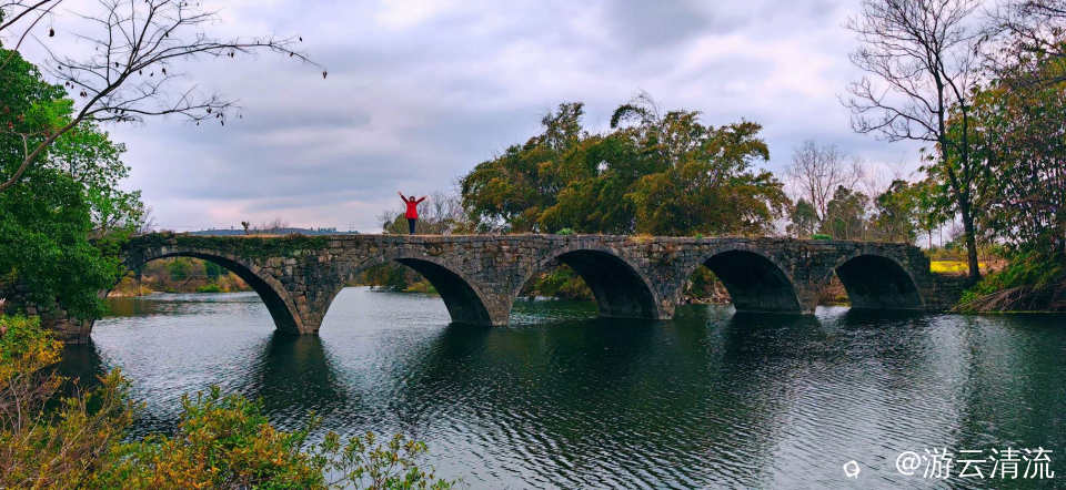 五曲连虹枕碧潮,仙槎曾渡马蹄骄。