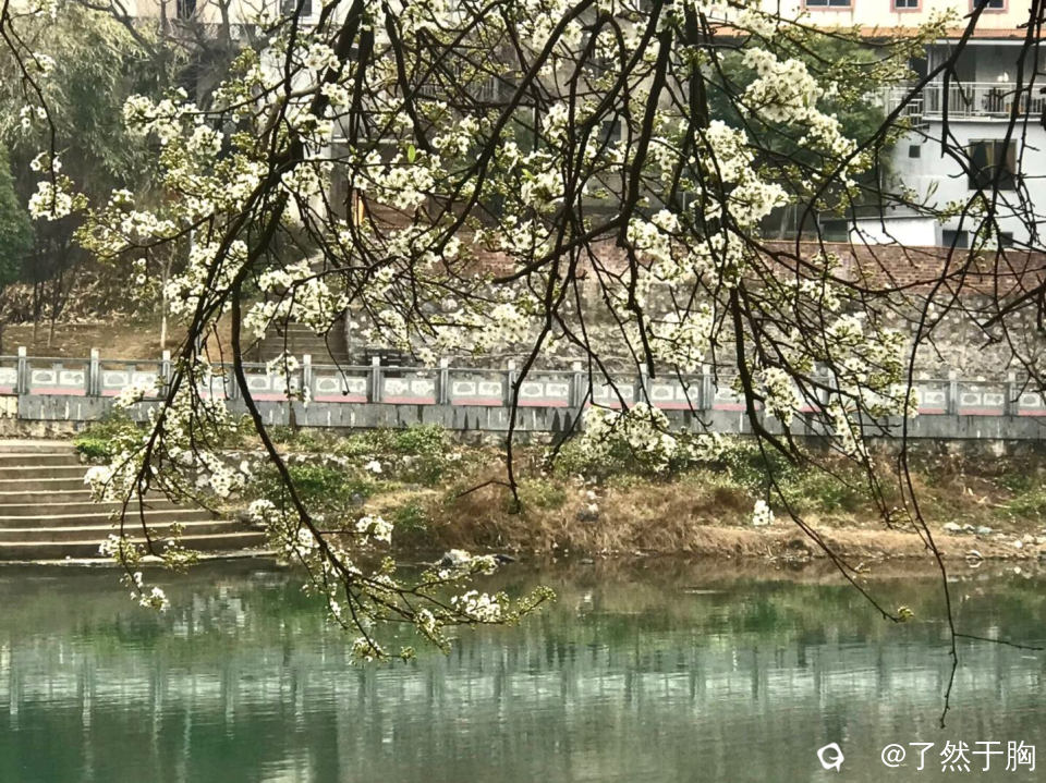 追随着春天的脚步,灵川县甘棠公园里的古渡石亭处,梨花也蓬蓬勃勃地绽放了。