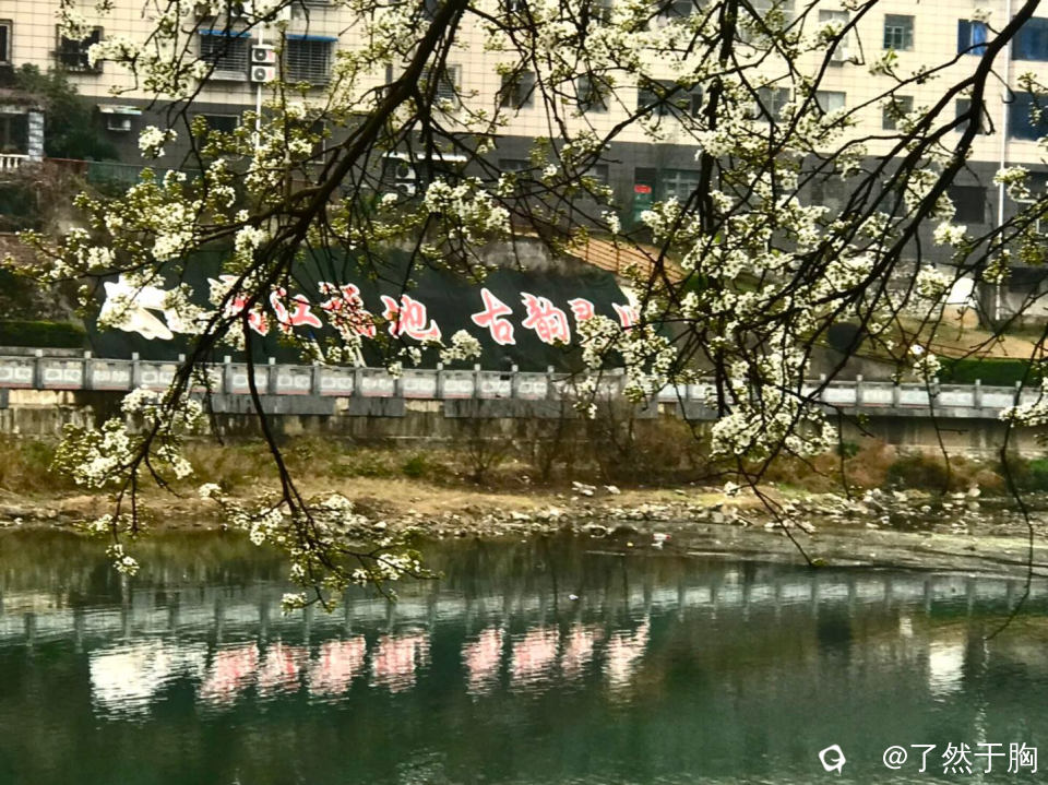 环绕着古渡边石亭的周边,甘棠江畔的数株梨树,在寒风冷雨中,渐次怒放了。洁白如玉的梨花,黝黑古朴的石亭,清澈如玉的江水,对岸的文字、画廊,组成了一幅幅情趣盎然又别具一格的画面。
