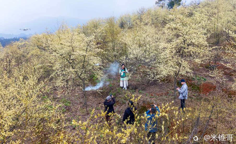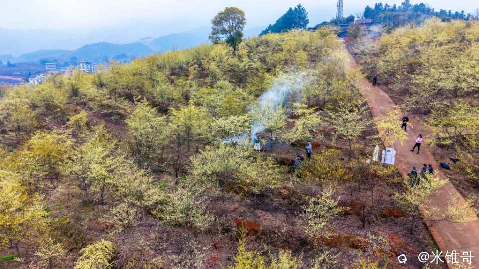 灌阳镇大仁村米珠山,此处建有100余亩的山苍子种植示范基地,并形成规模化花海景观。黄关镇龙吟村,设有山苍子油加工厂及种植基地,加工厂年产能达到100吨以上,是广西最大的山苍子油加工企业。山苍子别名“山胡椒”或“野胡椒”花期为2至3月,盛开时形成金色花海,具有独特香气,吸引游客观赏。是摄影的绝佳去处,各地的帅哥美女们云集此地,记录下自己美丽的瞬间。桂林网红大模红波,也赶到了这里,为花海增添了光彩。
