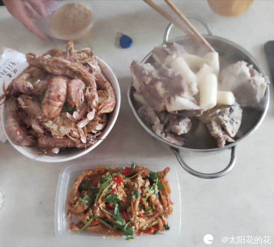 想保持开心的秘诀就是管好孩子,其他事情都不要多想,以后的事情以后再说,现在有吃就吃,有玩就玩,有钱就存起来…老公和亲戚家里那些男的个个做菜都好好吃,所以我从来的只在家煮东西给萱萱和她爸爸吃,很多人一起吃饭的时候都是他们下厨,哥哥的孩子来这里以后我和小朋友就有口福了,一休息孩子爸爸和妹夫还有舅舅就轮流着去菜市买菜回来煮菜吃,跟着他们吃饭伙食好多了,前天吃大闸蟹和香辣蟹,昨天去饭店吃牛肉,今天中午吃皮皮虾、去骨鸭掌、山药筒骨汤,晚上吃血鸭火锅、猪脚火锅、水煮鱼,妹妹和妹夫朋友好多,晚上吃饭的人都坐了两桌,我照片都不好意思拍了,某个人口味好重觉得我做的饭菜太素了不好吃,今天休息又在家做了好多曲米鱼说放家里慢慢吃 ……