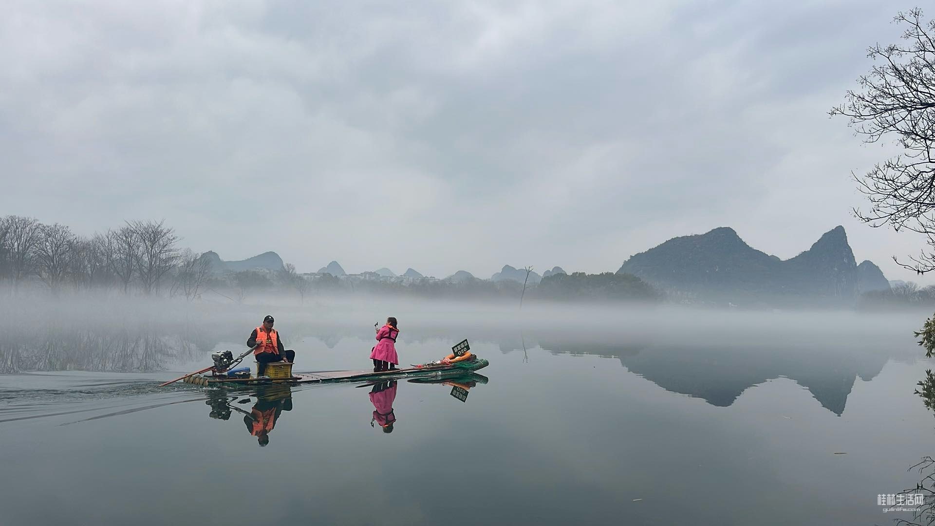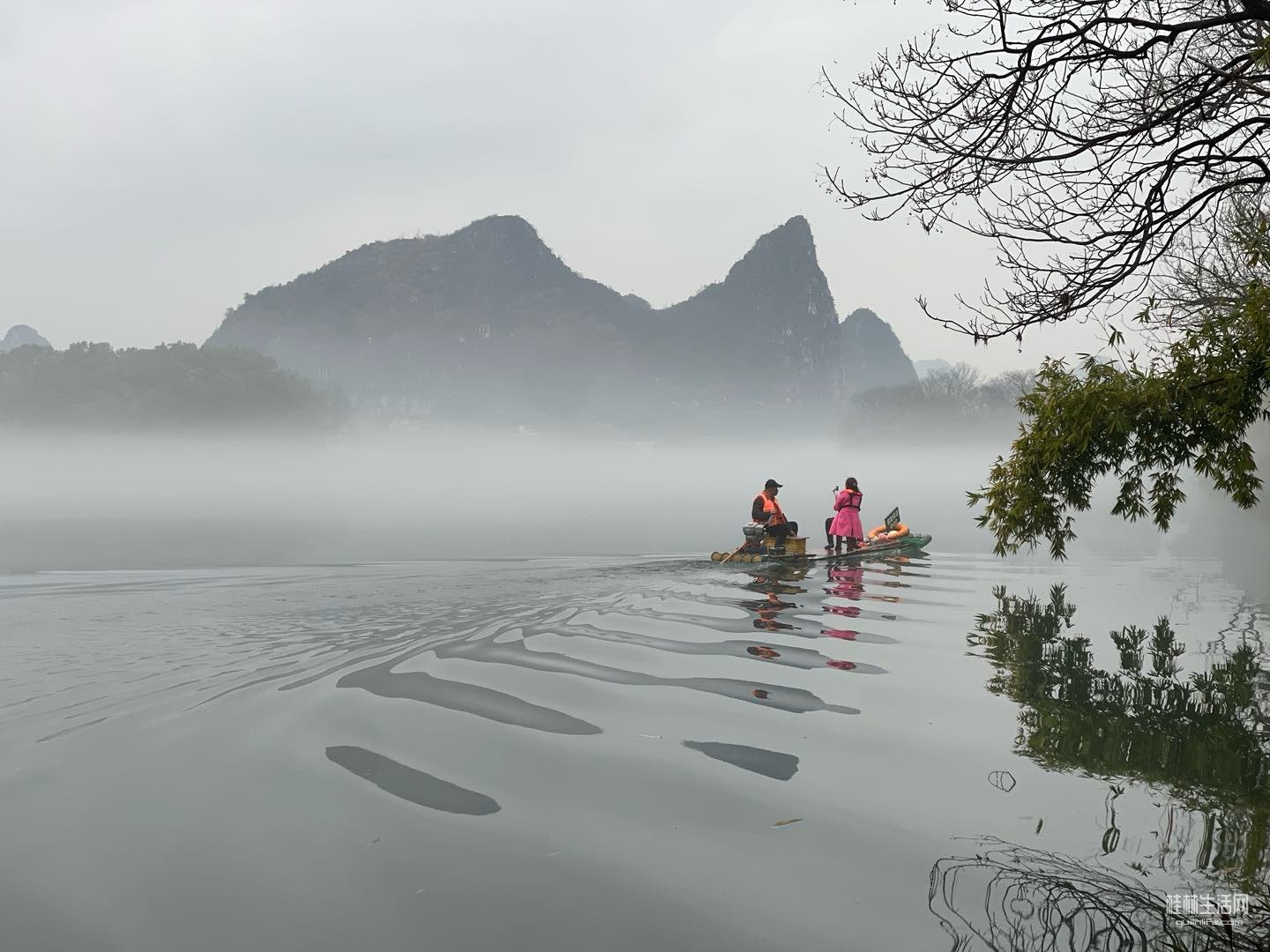 漓江上,竹筏轻摇,游客沉浸此时晨雾弥漫的河中,在这春光烂漫的日子里,桂林的每一处风景都充满了生机与活力,让人流连忘返,仿佛置身于一个梦幻般的世界。无论是晨雾中的朦胧美,还是夕阳下的金色辉煌,桂林的山水总能以其独特的魅力,让人心旷神怡,忘却尘世的烦恼。