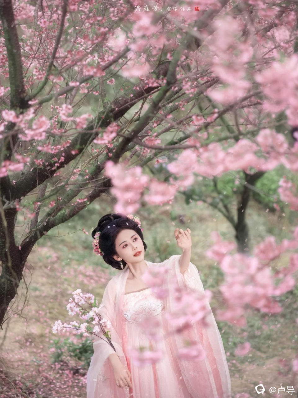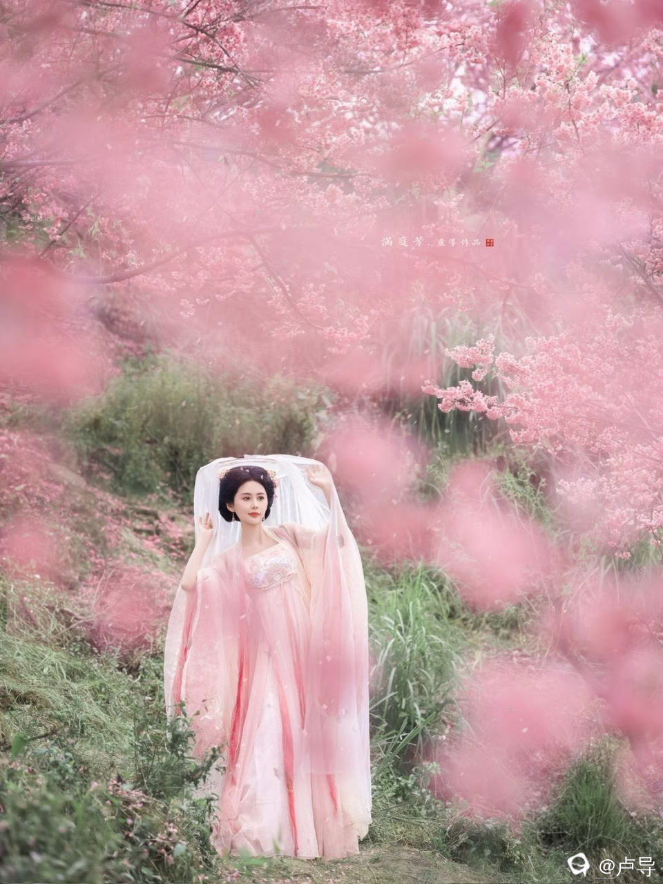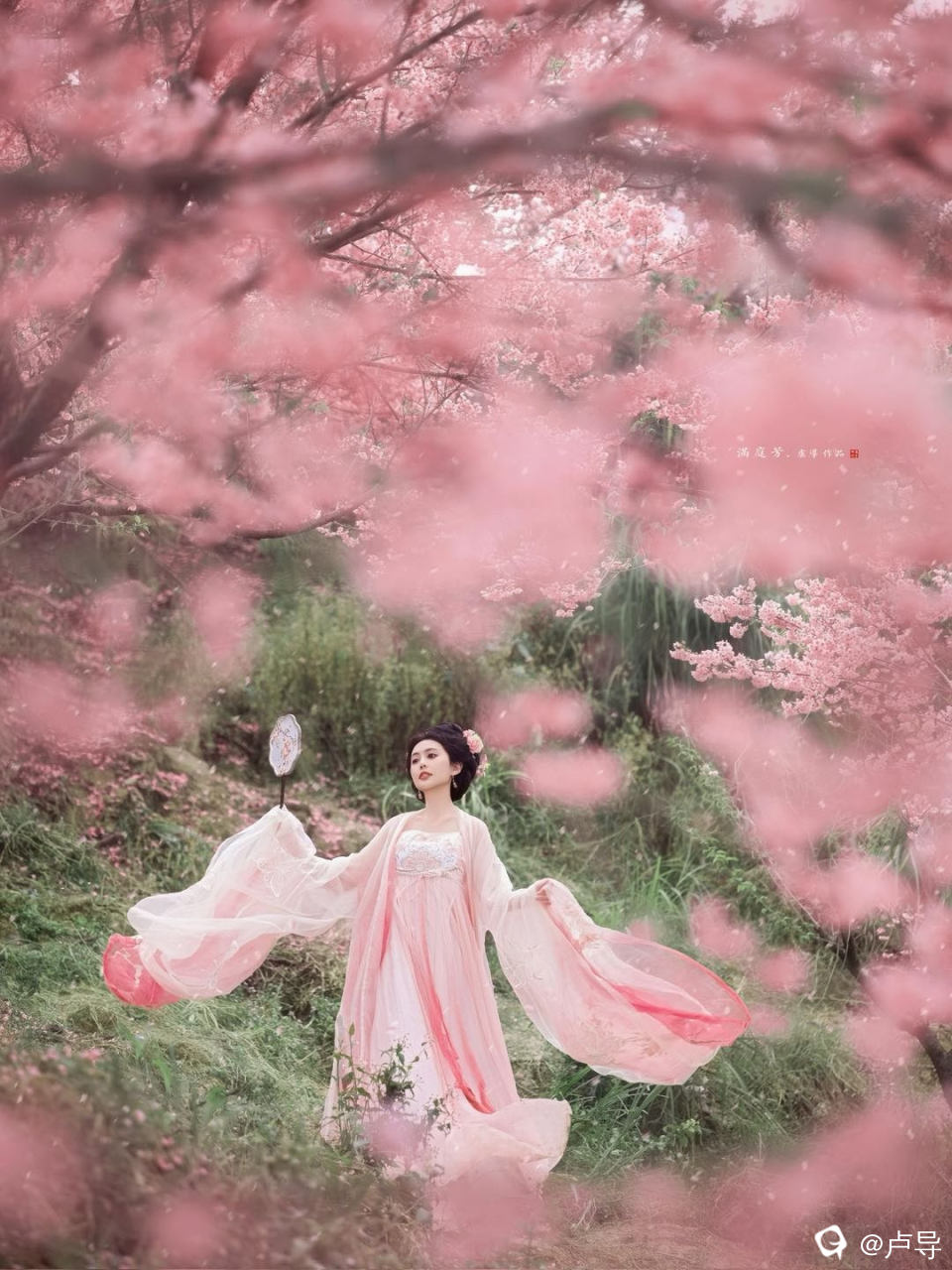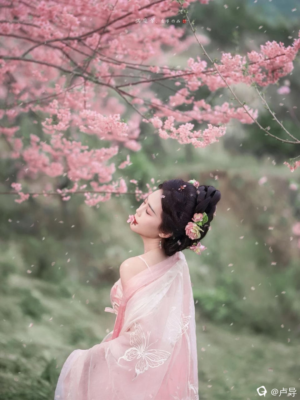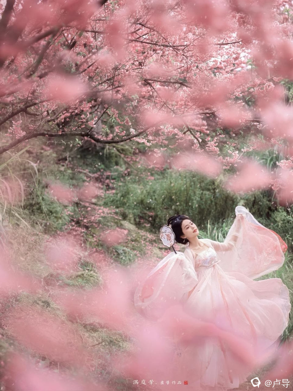 一抹香肩醉春风,粉衣似梦韵无穷。