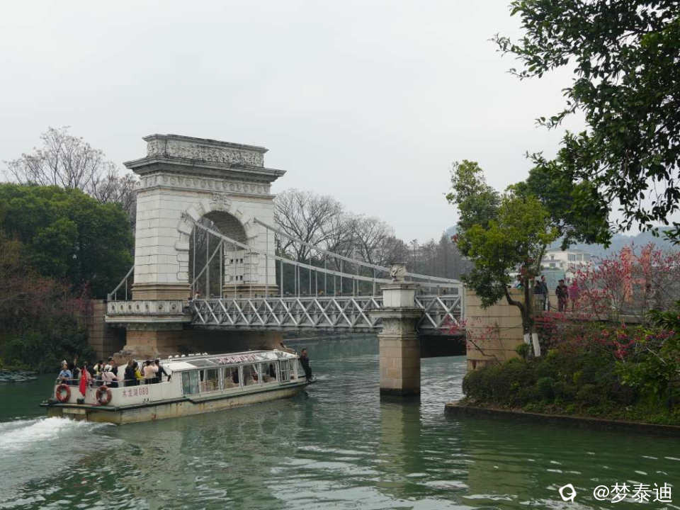 游船通过榕溪桥后,马达的隆隆声又唤醒了寂静的迎宾桥,给这里增添了生气和动感,桃花们也列队欢迎远道而来的游客!