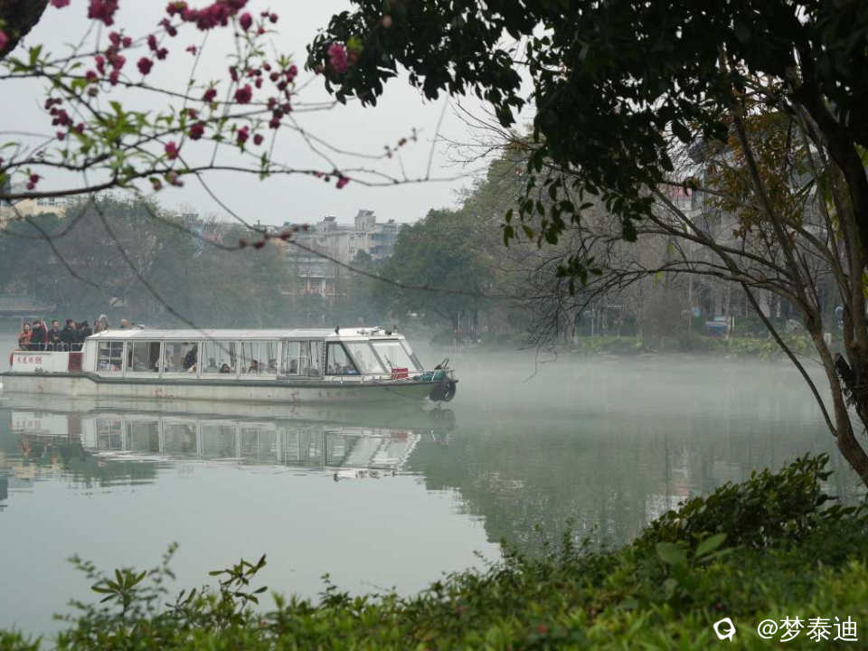这是一次有桃花们簇拥,平流雾加入,意外惊喜的榕湖漫游,你感受到这美好的春日画面了吗!
