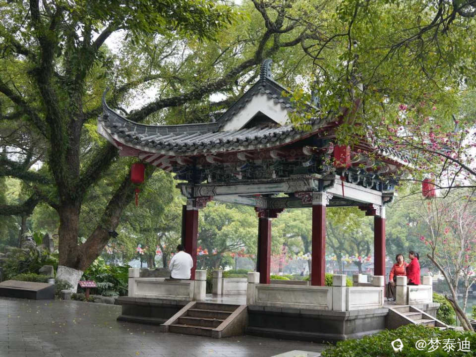 湖边,亭前的桃花们纷纷亮相,榕湖边霎时姹紫嫣红,一派春日景象!