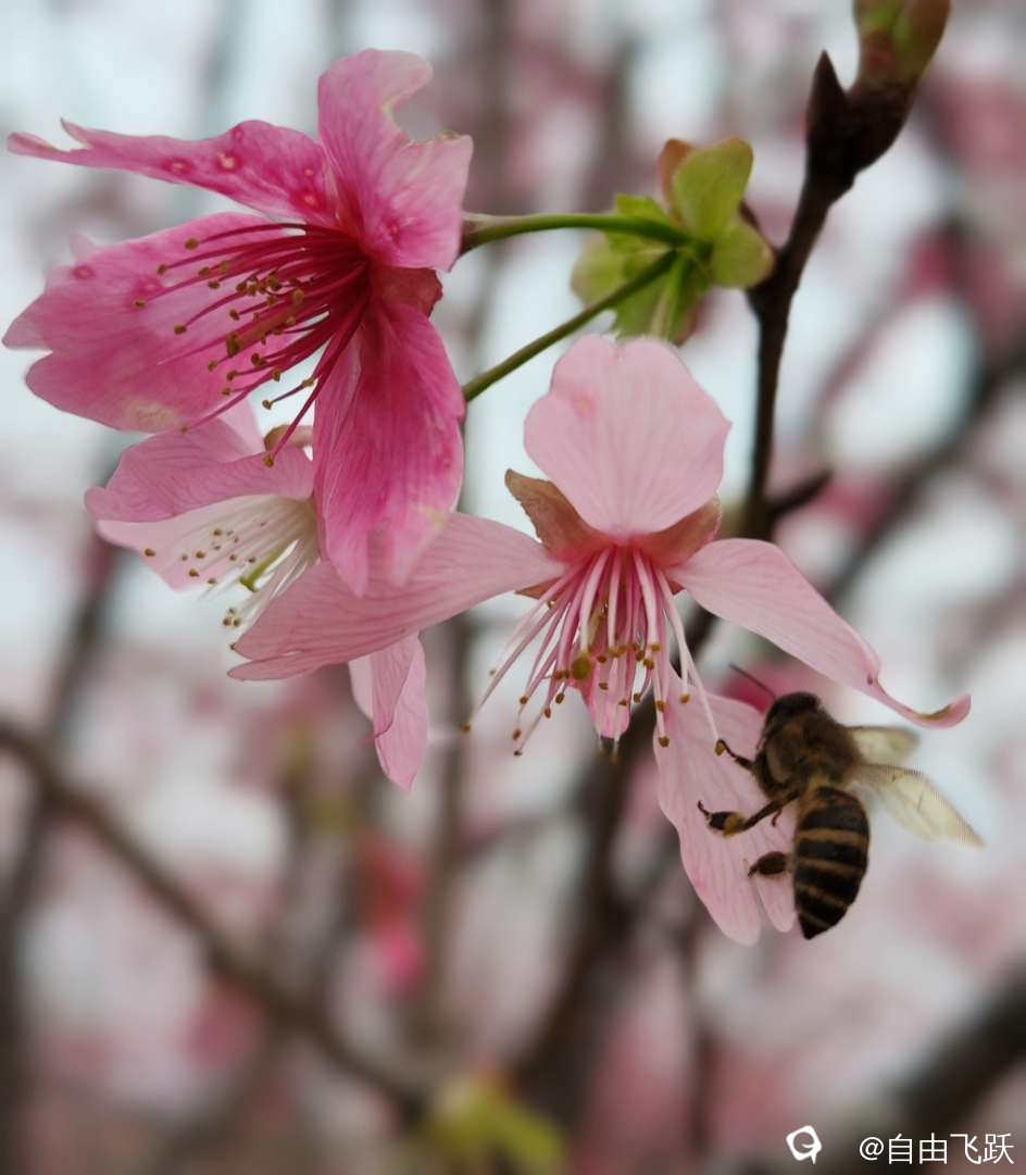 于是也顺便进去凑下热闹,里头好闹热啊,红红火火的樱花开了一大片,爱花的人和蜜蜂都来齐了,人是来玩耍,蜜蜂来工作,没一样的。