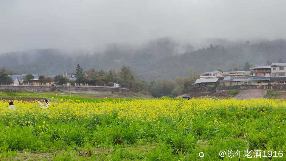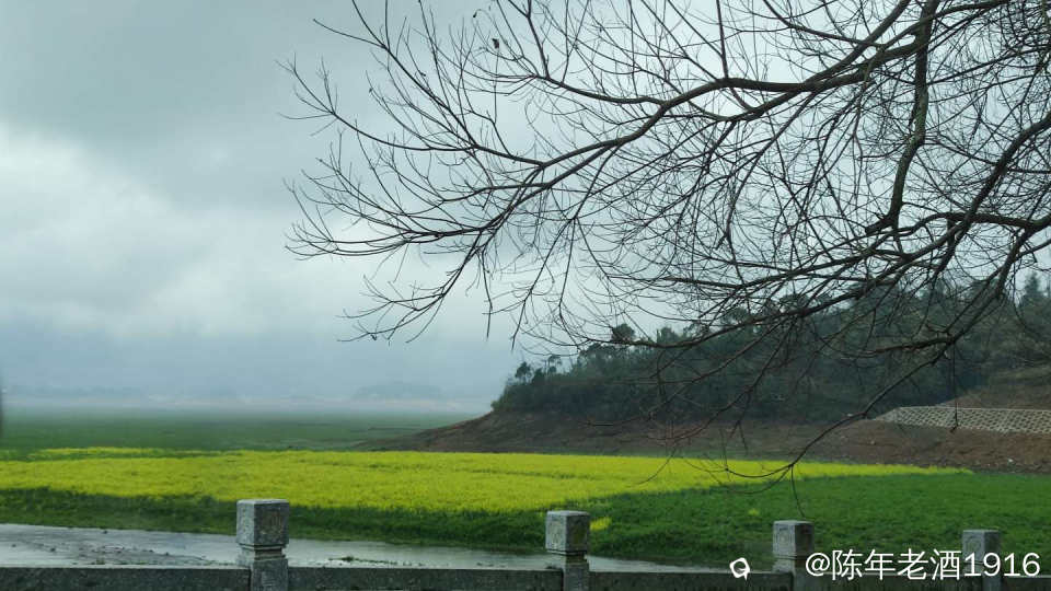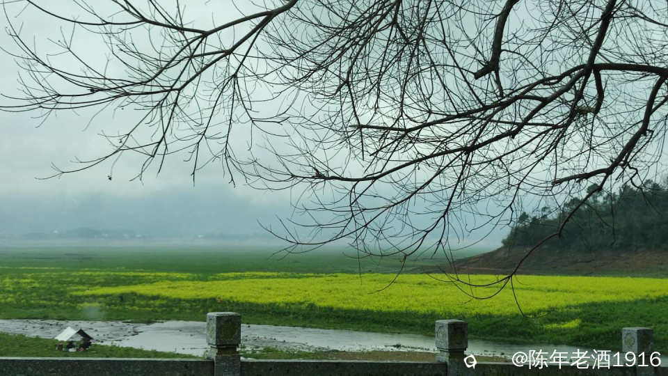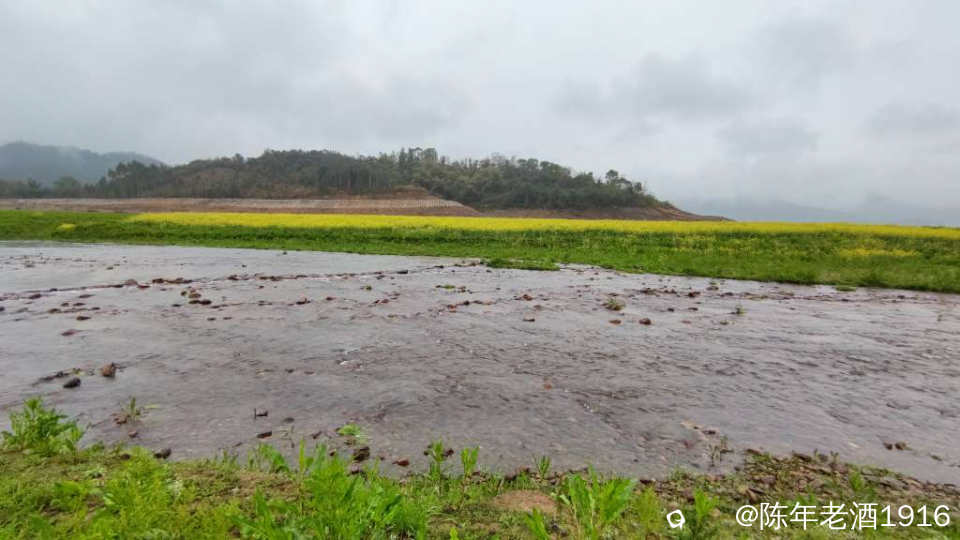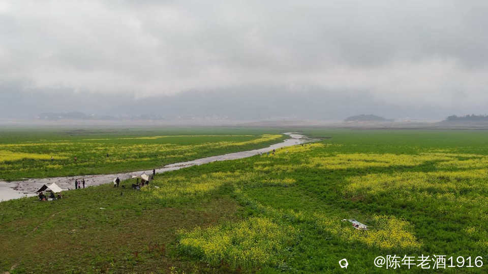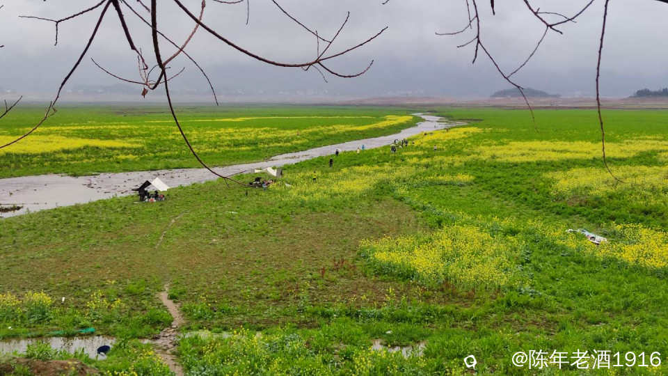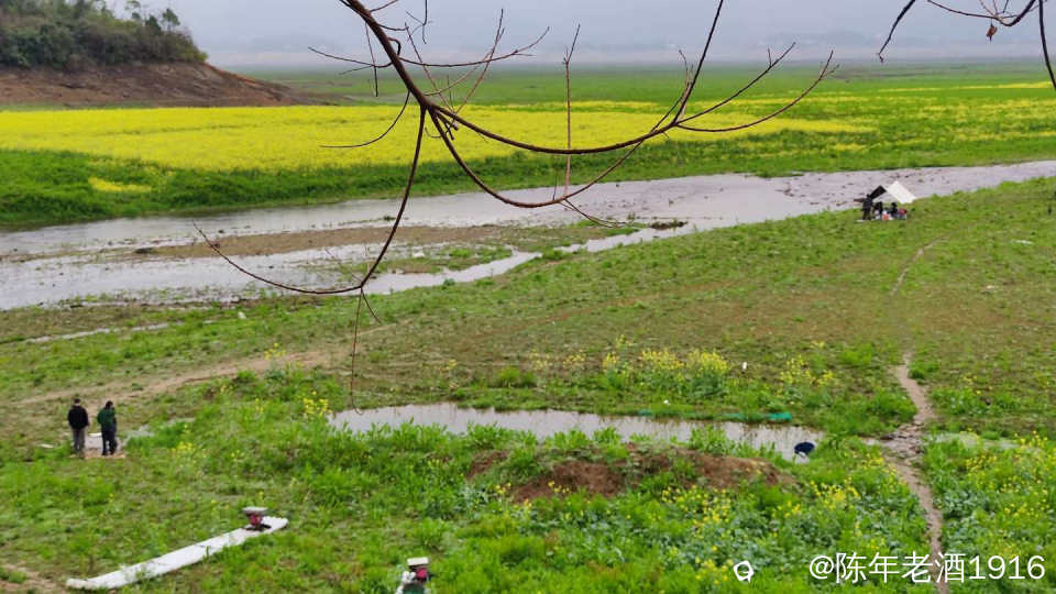 今天再次到此一游,今年的紫云英不知是花期未到还是花的长势不好,稀稀拉拉的开着花,完全被忽略了。今年两岸边又种上子油菜花,但长势也没有三年前的壮观。由于库区没蓄水,流经于此的河流也裸露着河床,两岸的稀稀拉拉的油菜花,烟雨蒙蒙的天气,远山云雾缭绕若隐若现,哗啦啦的流水声给朦朦胧胧的画面带来了生机。