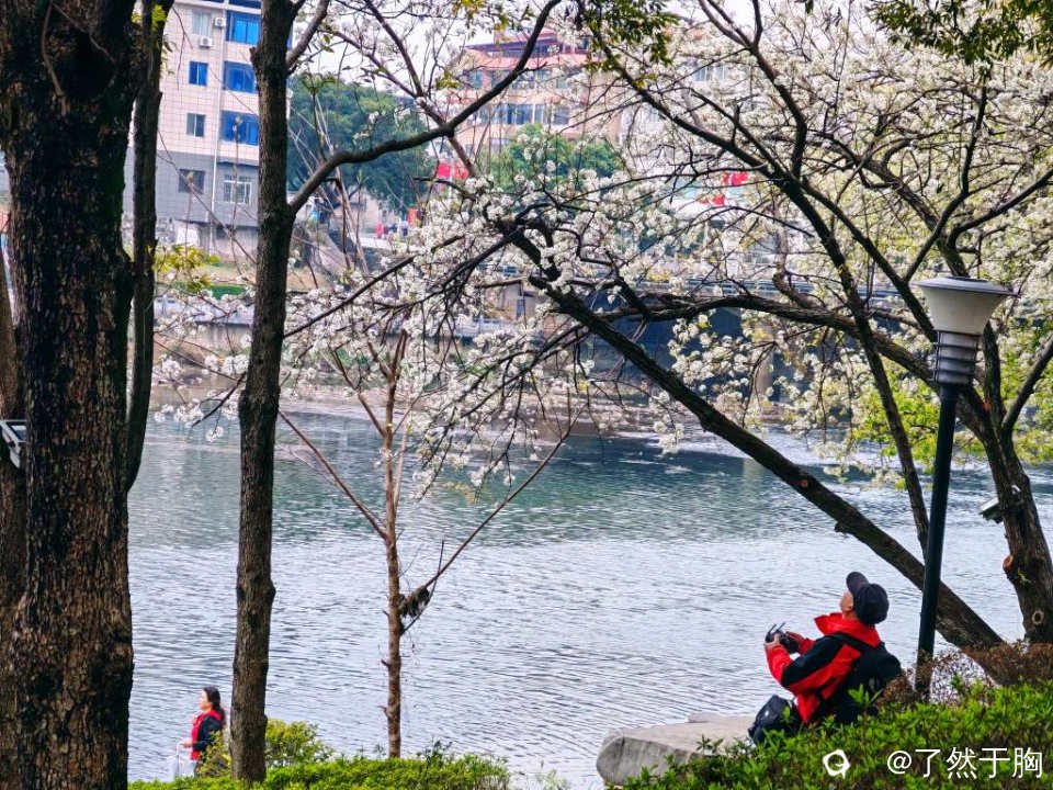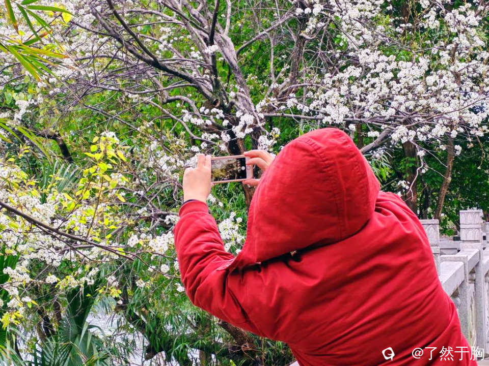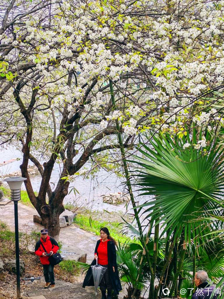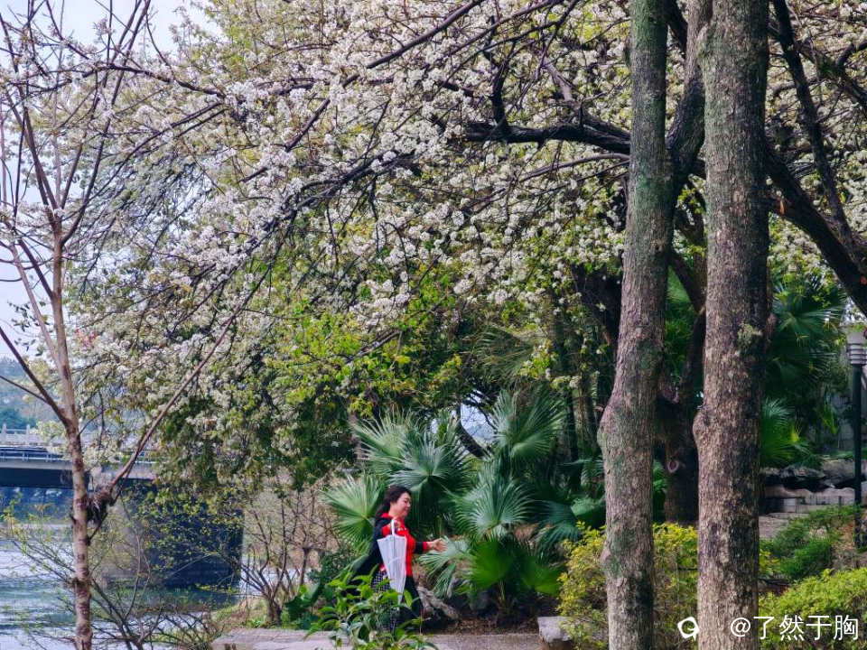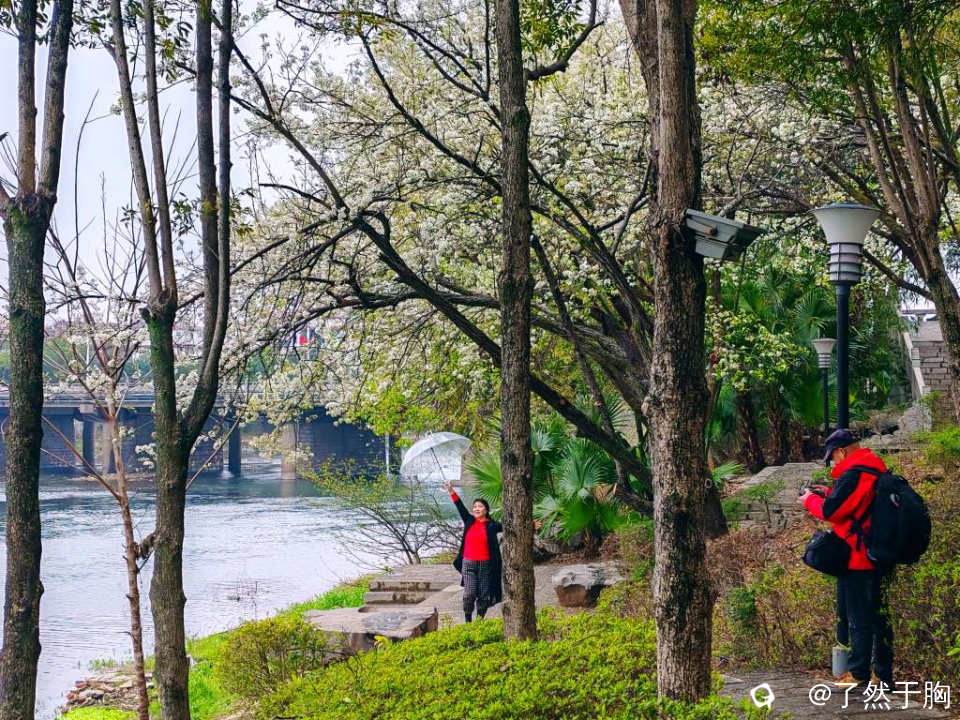 灵川县甘棠公园甘棠大桥头的那几树梨花,这段时间开得十分泼辣。放眼望去,犹如天上落下的一块云朵,洁白无瑕,特别引人注目。