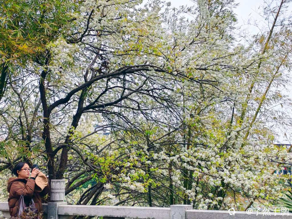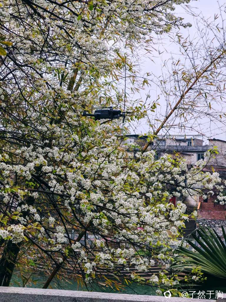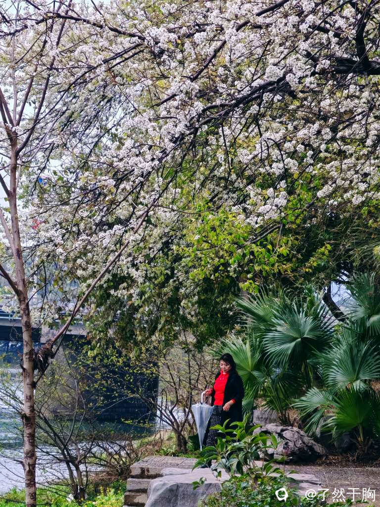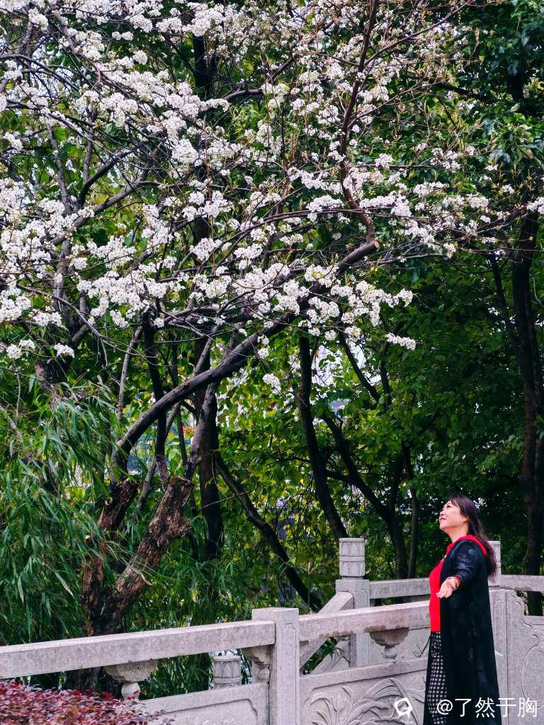 灵川县甘棠公园甘棠大桥头的那几树梨花,这段时间开得十分泼辣。放眼望去,犹如天上落下的一块云朵,洁白无瑕,特别引人注目。