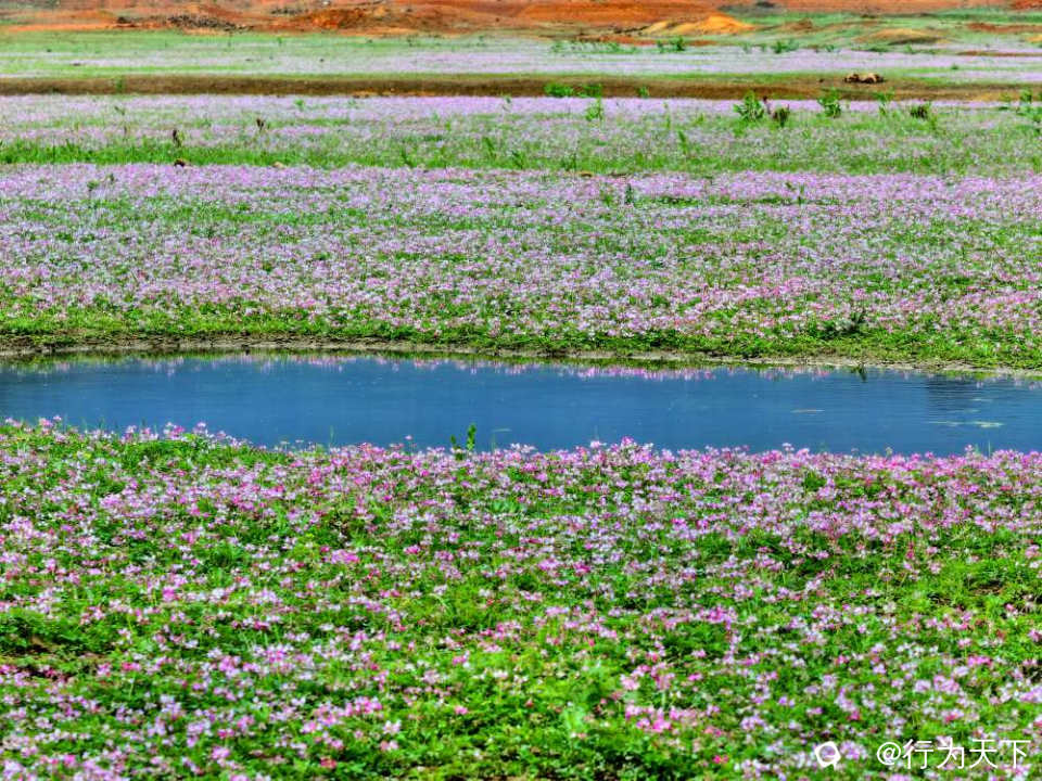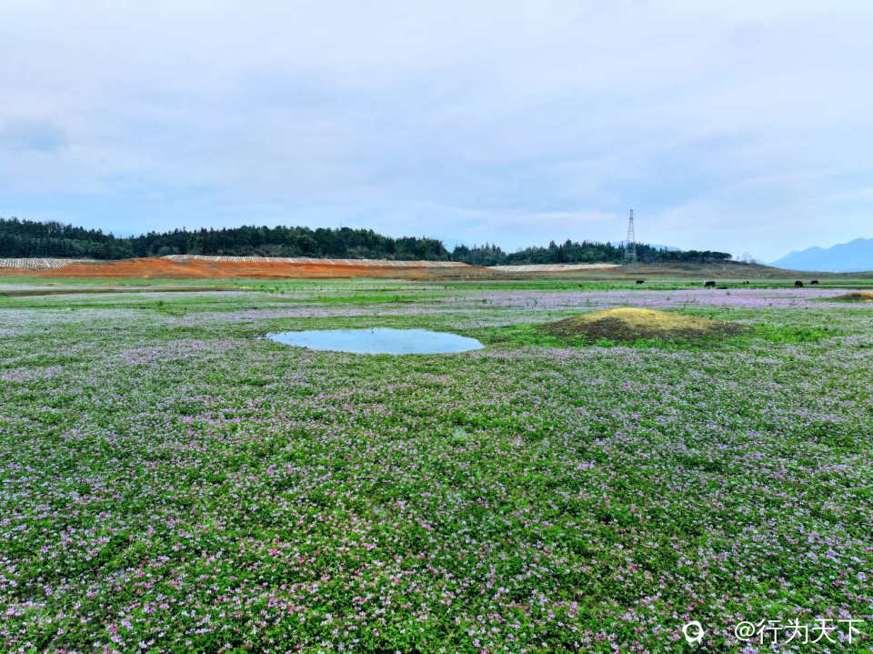 今年的紫云英比往年少了许多,但在干涸的库区有成片的花海可以打卡赏花。桂林市区出发大约需要57分钟车程,全程水泥路。