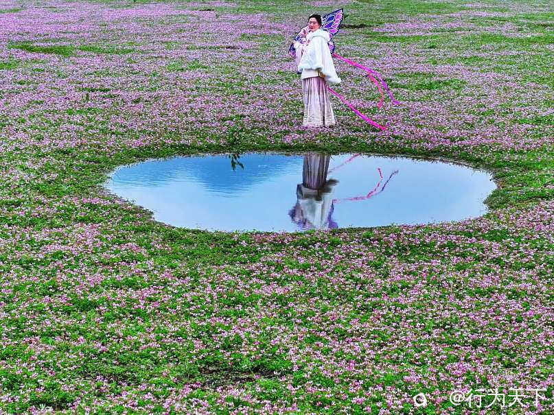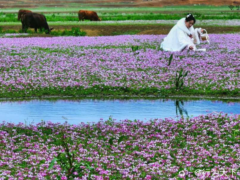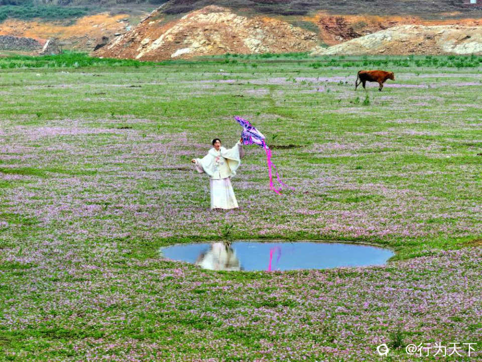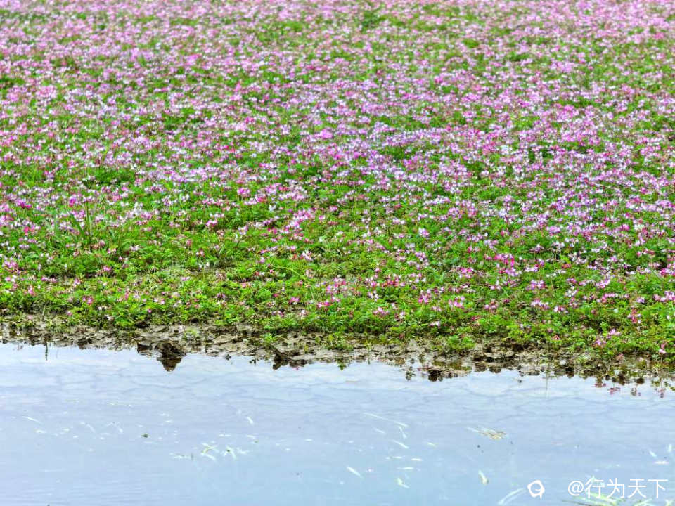 春日私语,桂林灵川大桥村的紫云英又一次花海灿烂。三月的风,轻柔地掠过灵川大桥村干涸的湖面,唤醒了沉睡的紫云英。