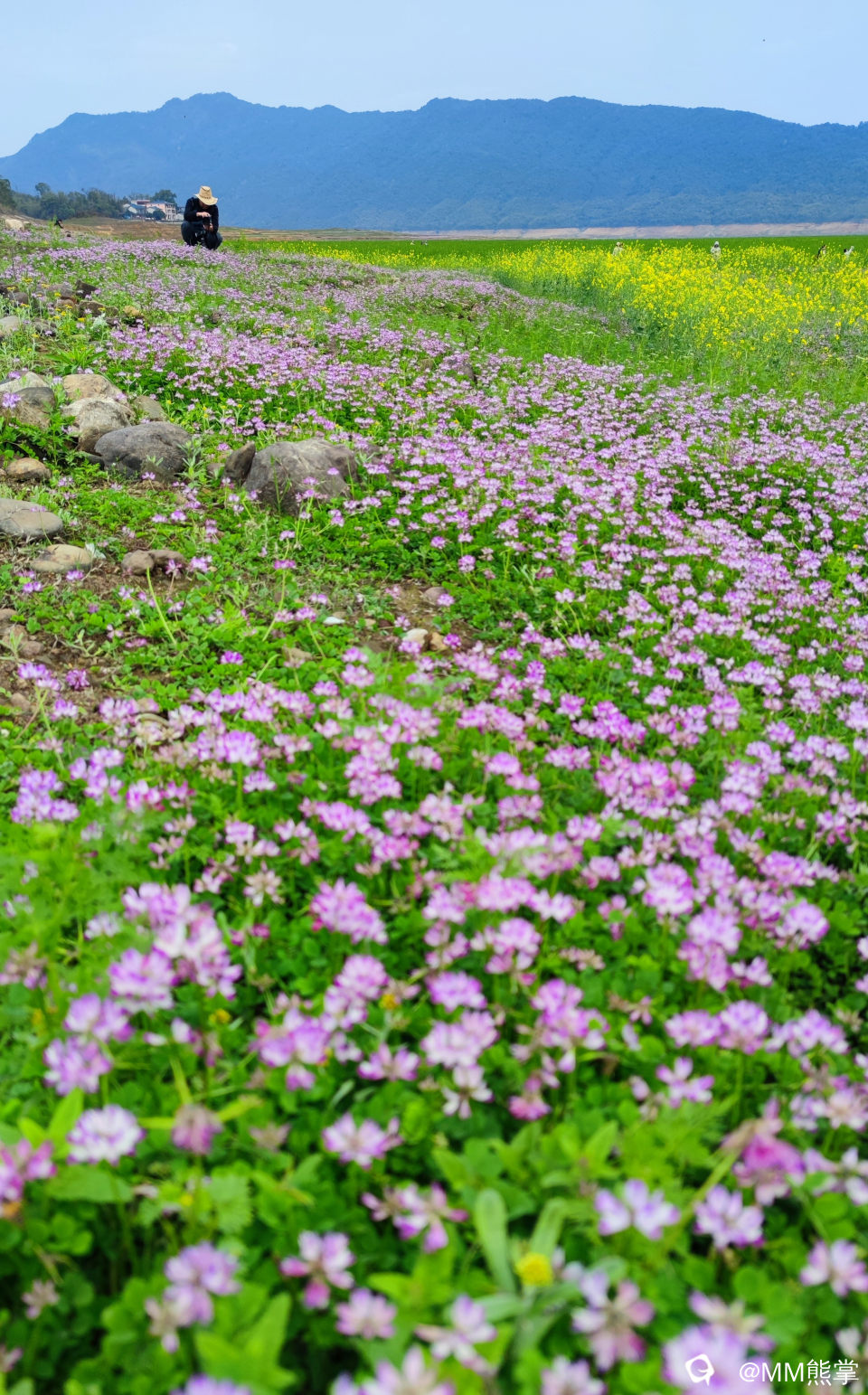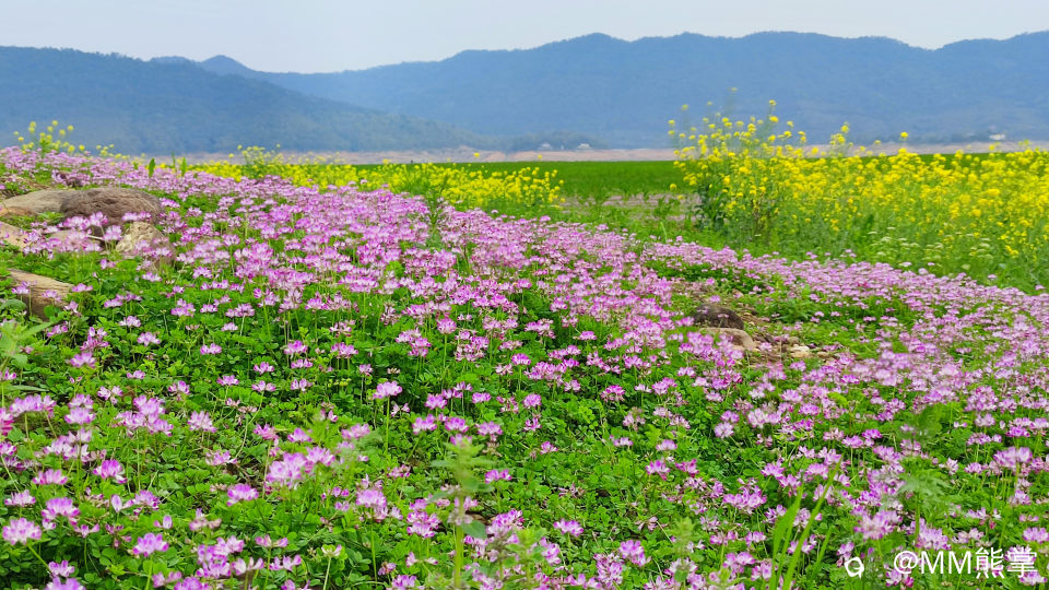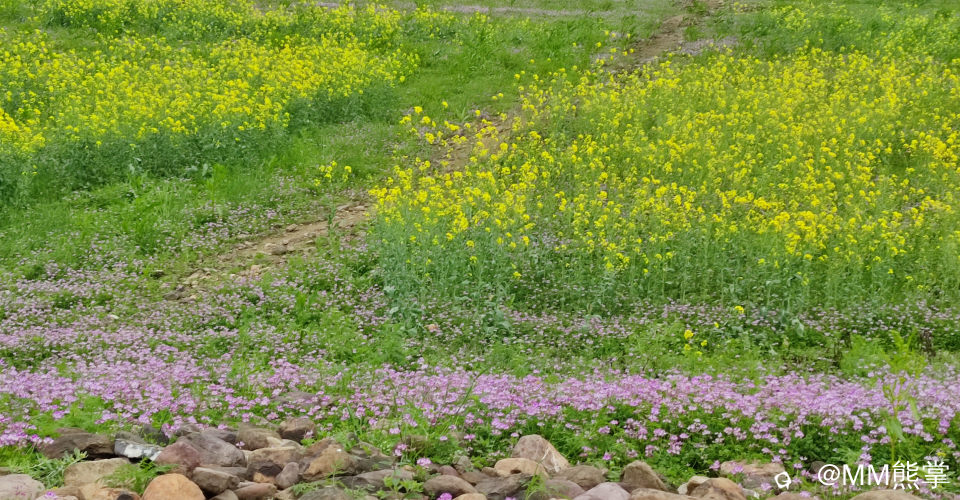 红色的是紫云英,一块一块的,相互交错在一起!在温暖的阳光下,格外清新养眼!感觉随手一拍,都可以作屏保!