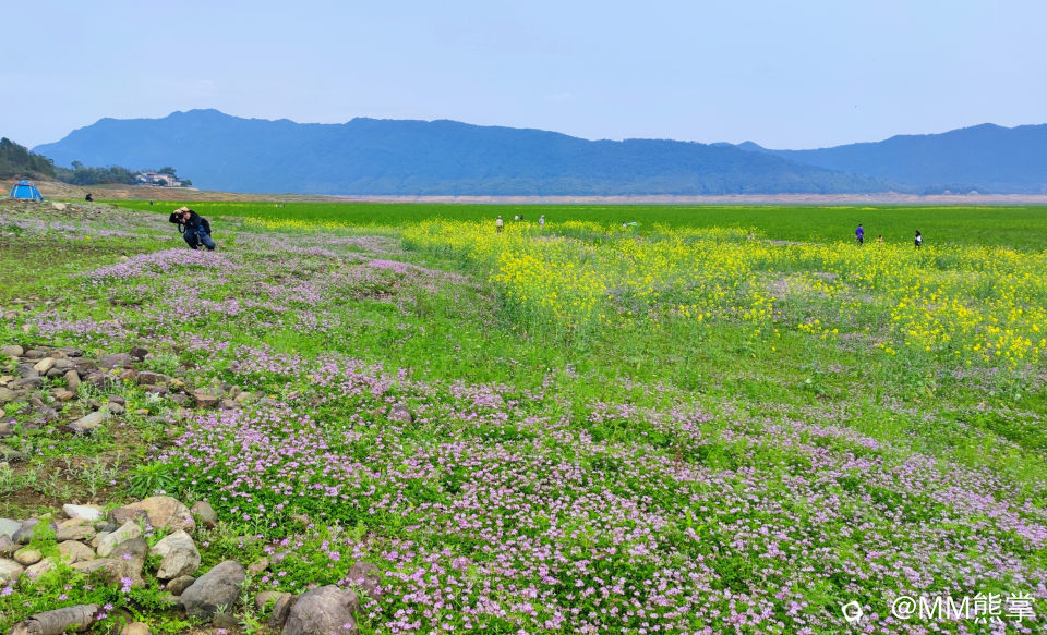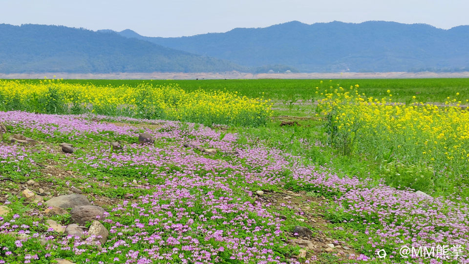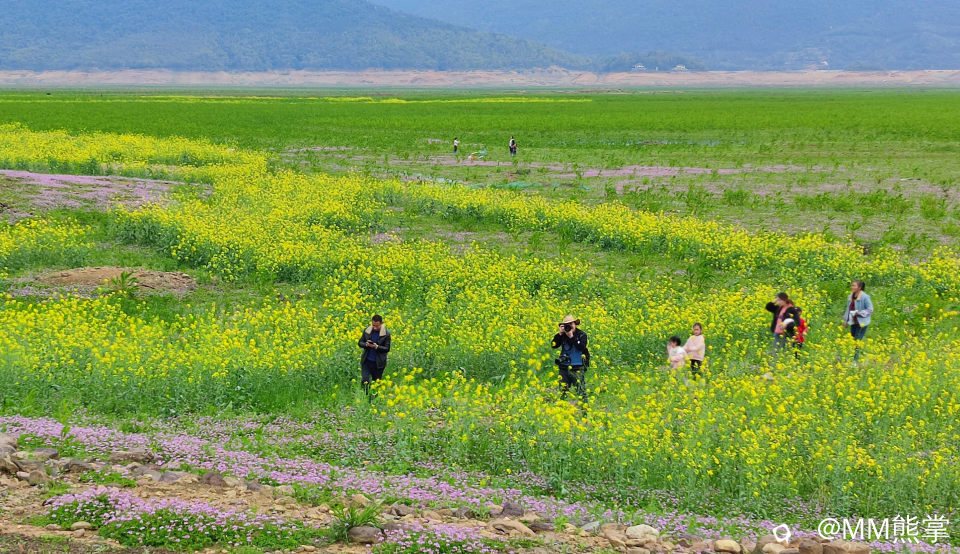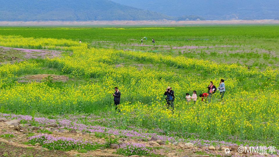 春暖花开,阳光明媚。和摄友开车导航到灵川县公平乡下黄村踏春。一到湖边,一片春意盎然的绿色映入眼帘,非常养眼,上面点缀着星星点点的黄色和红色。黄色的是油菜花,一片一片的;