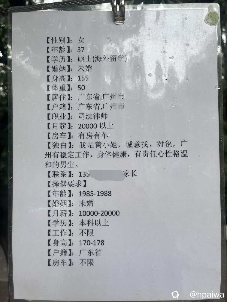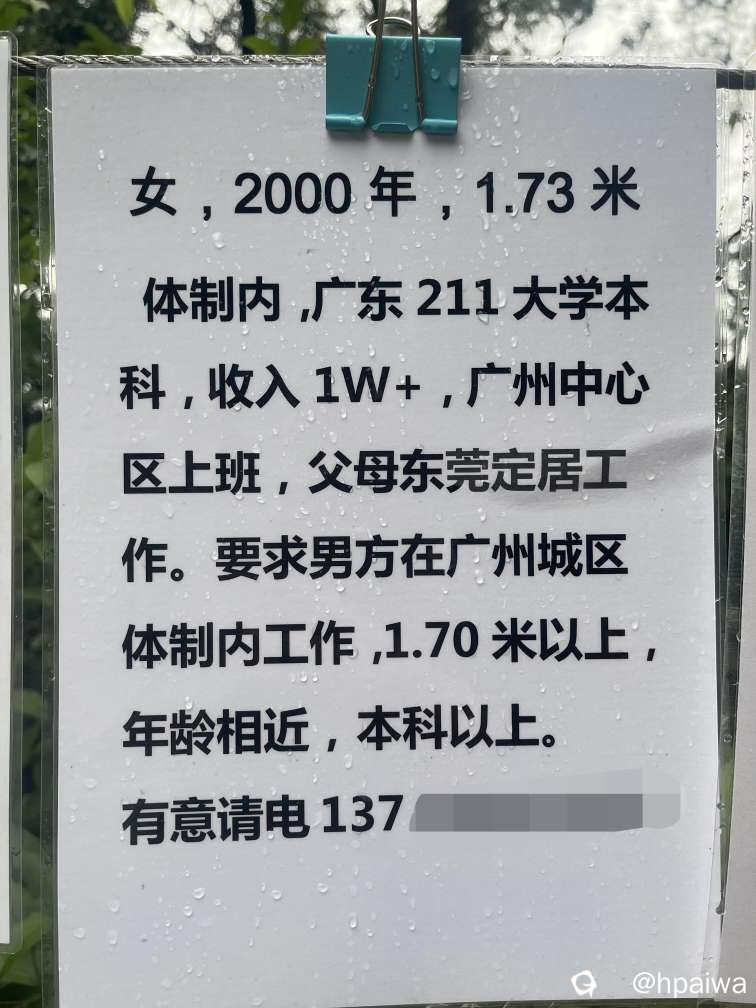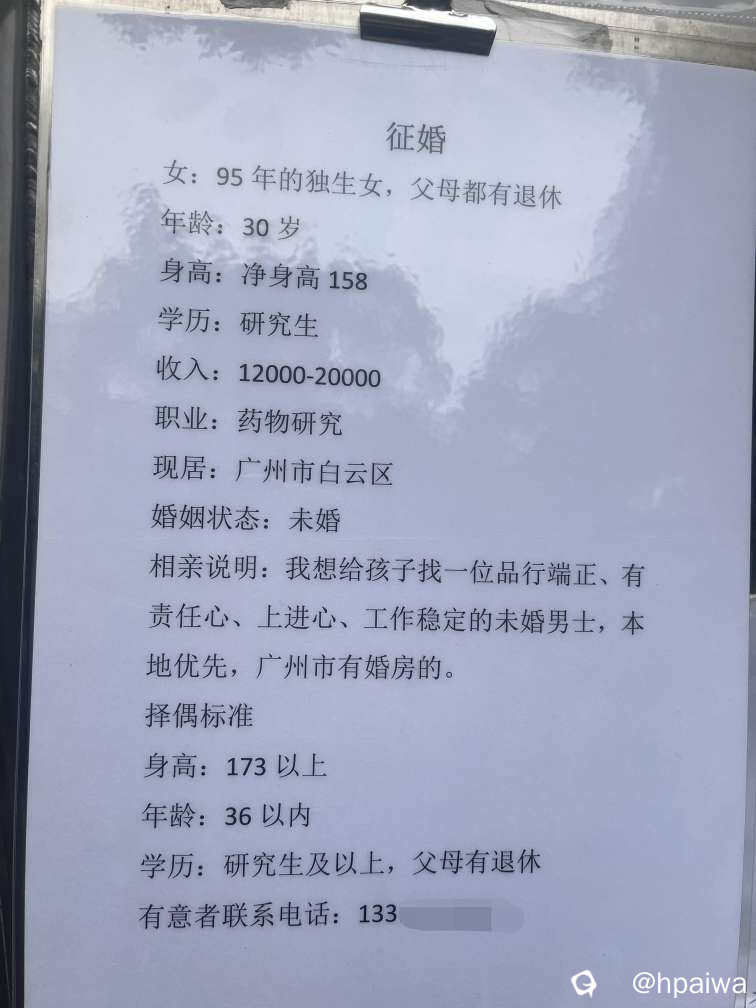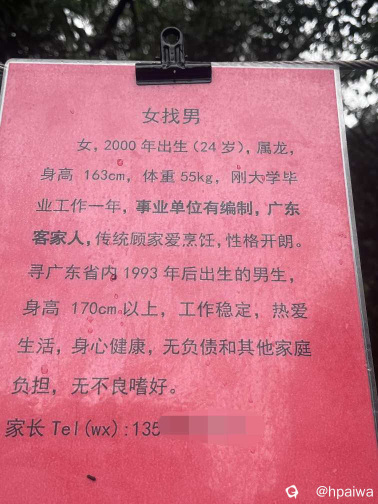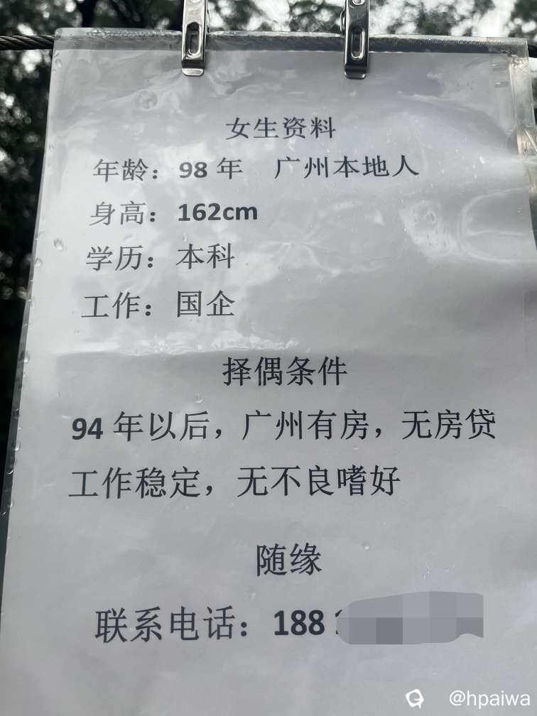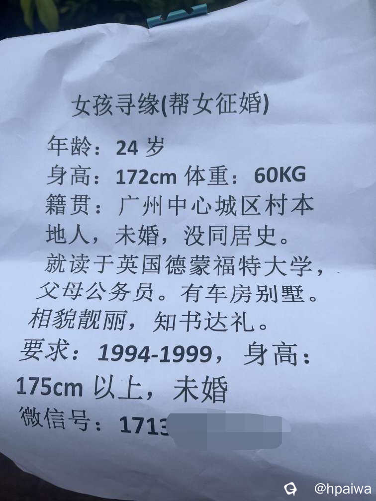 到广州天河公园相亲角打一转,看了这些相亲广告,感慨万分: