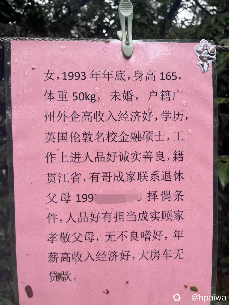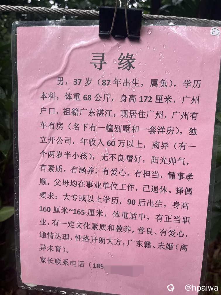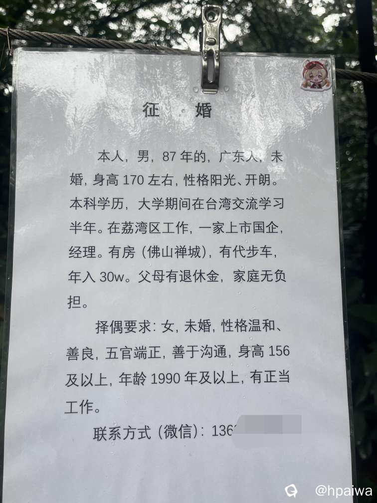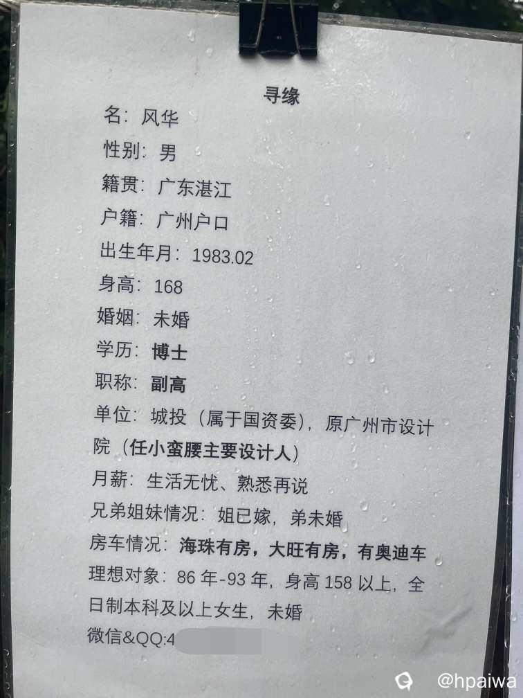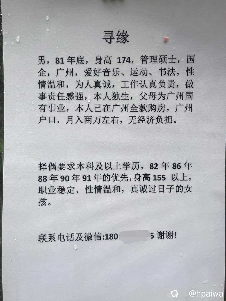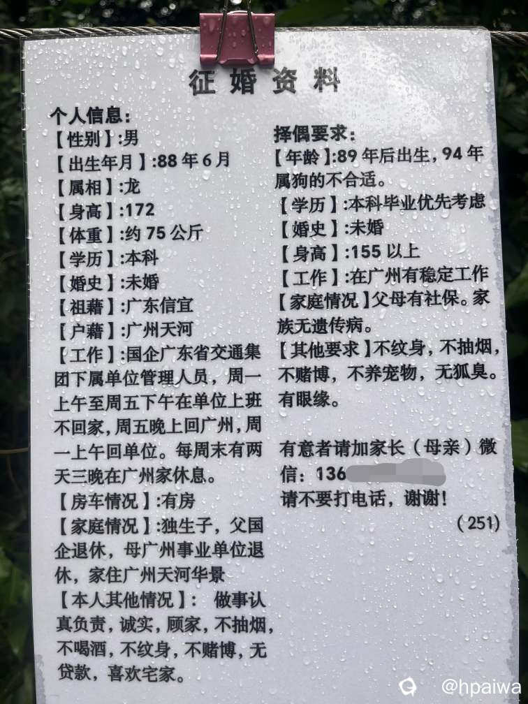到广州天河公园相亲角打一转,看了这些相亲广告,感慨万分: