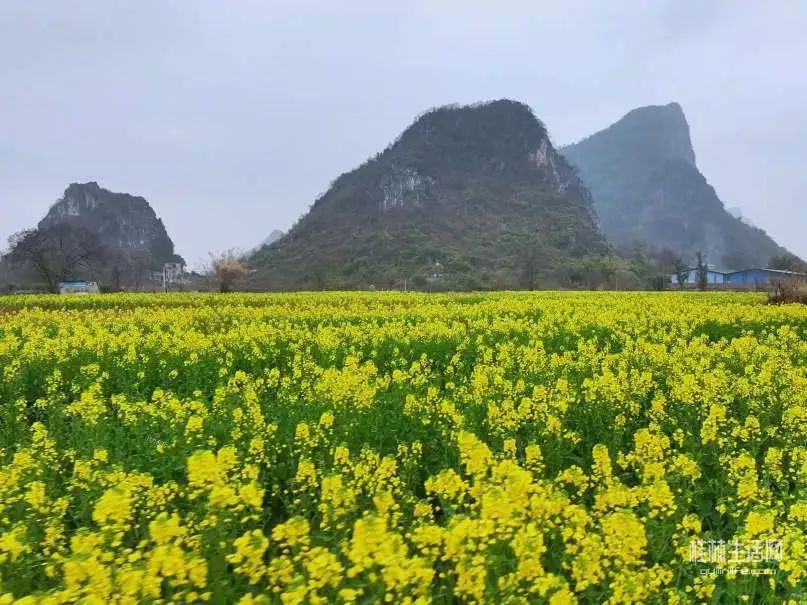 桂林近郊又一片金色花海,邂逅春日浪漫,灵川定江聚田与江东村田园间的油菜花海,正在娇艳盛开,春风拂过灵川定江镇,唤醒了沉睡的江东村田园风光