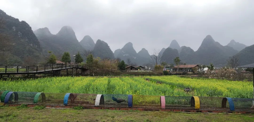 园区被千姿百态的喀斯特峰林环绕,有美丽的湖泊小桥;有果树农耕园区;可在天空之境中拍照,还能观赏摇曳的油菜花等。农庄漫步接连给我们带了很多意外惊喜!大家沉醉在山水相依美景中,开心得流连忘返……