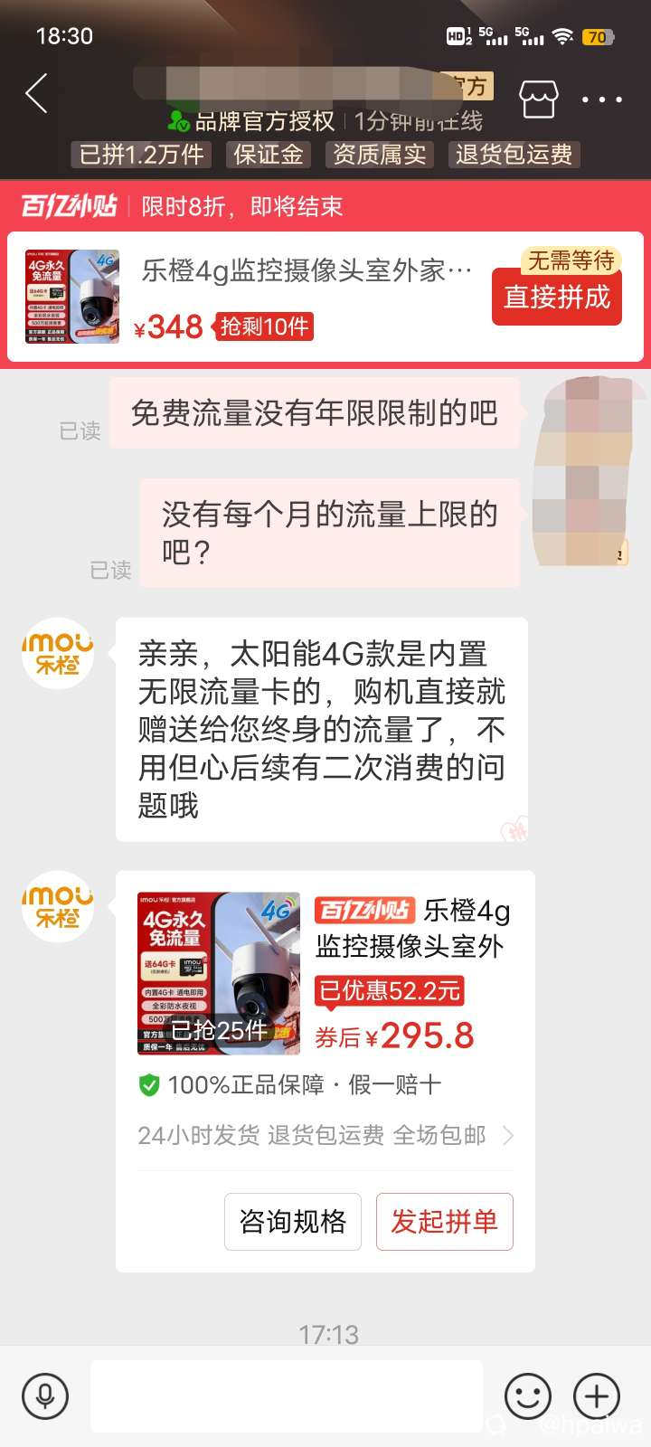 拼夕夕上看到一种号称终身免费流量的监控头,有没有人用过?有没有套路?