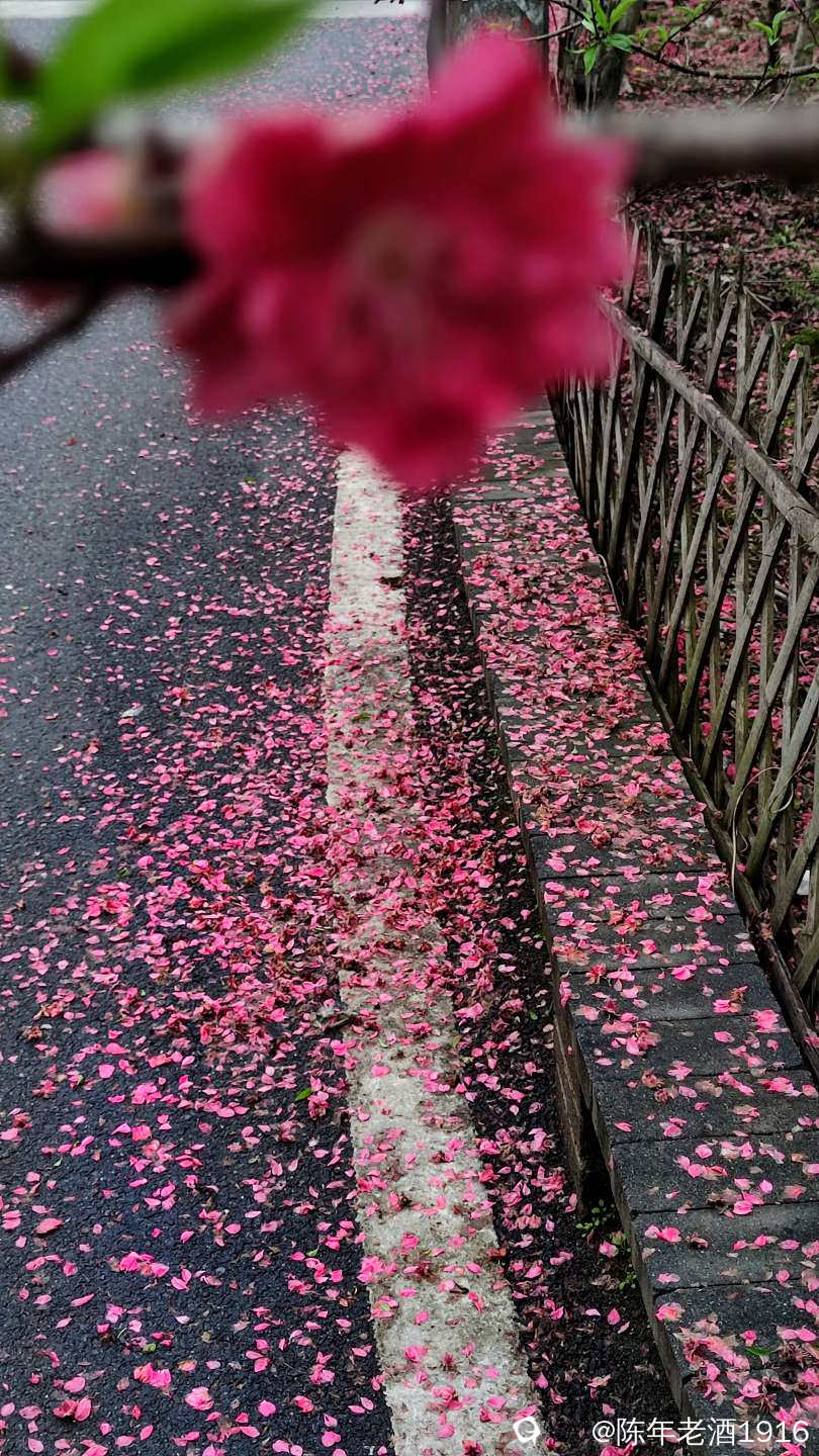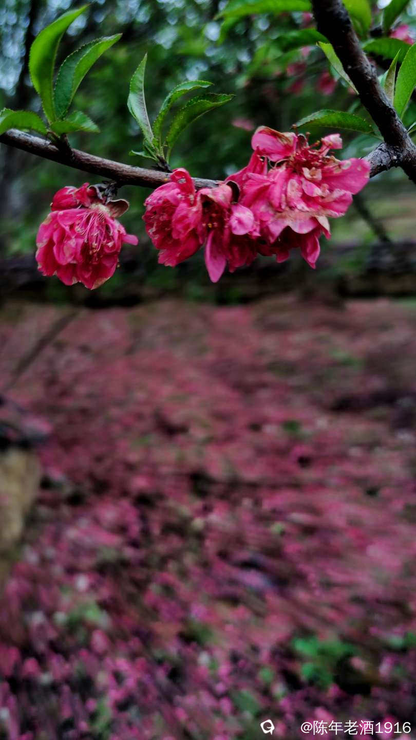 尽管此时桃树上的桃花已经寥寥无几,错过了花期,但此刻已经顾不上树上的花多花少、花残花艳,完全沉寂于席地落花中。“落红不是无情物,化作春泥更护花。”此情此景,唯有用镜头把这美丽的瞬间变成永恒,不同角度一顿操作,陶醉其中久久不愿离去......