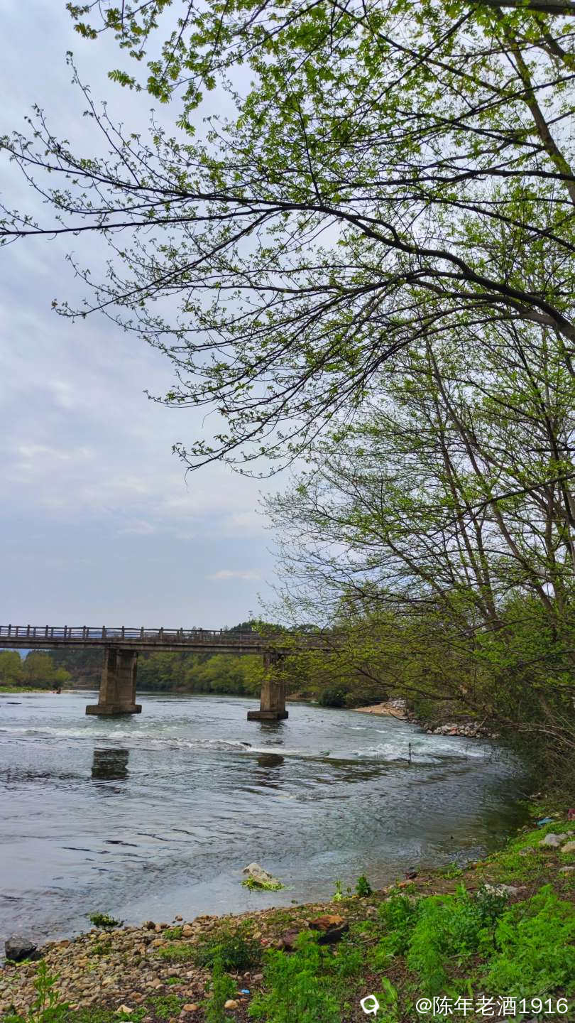 本来是想再次去两江咸进村里面看看春日风光的,可路过村口的桥上看到义江沿岸的风光,就有点走不动路了,于是停下脚步在江边漫步。经过前阵子的雨水,义江的水量还算充足,江水清澈而湍急,哗啦啦的水声是那么的悦耳,沿岸树木郁郁葱葱,站在桥上环顾四周风景独好。