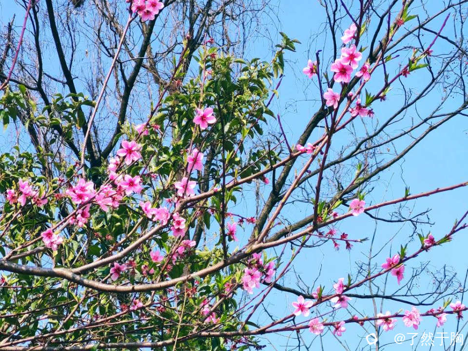 从灵川镇桥头新村开始,沿着甘青支渠南行,渠道底是碧绿青翠的野草,山岭旁,沟渠边,桃花梨花,梧桐花映山红继木花,荒地上各色各样的野花,一路都是。漫步其中,如在花中行。