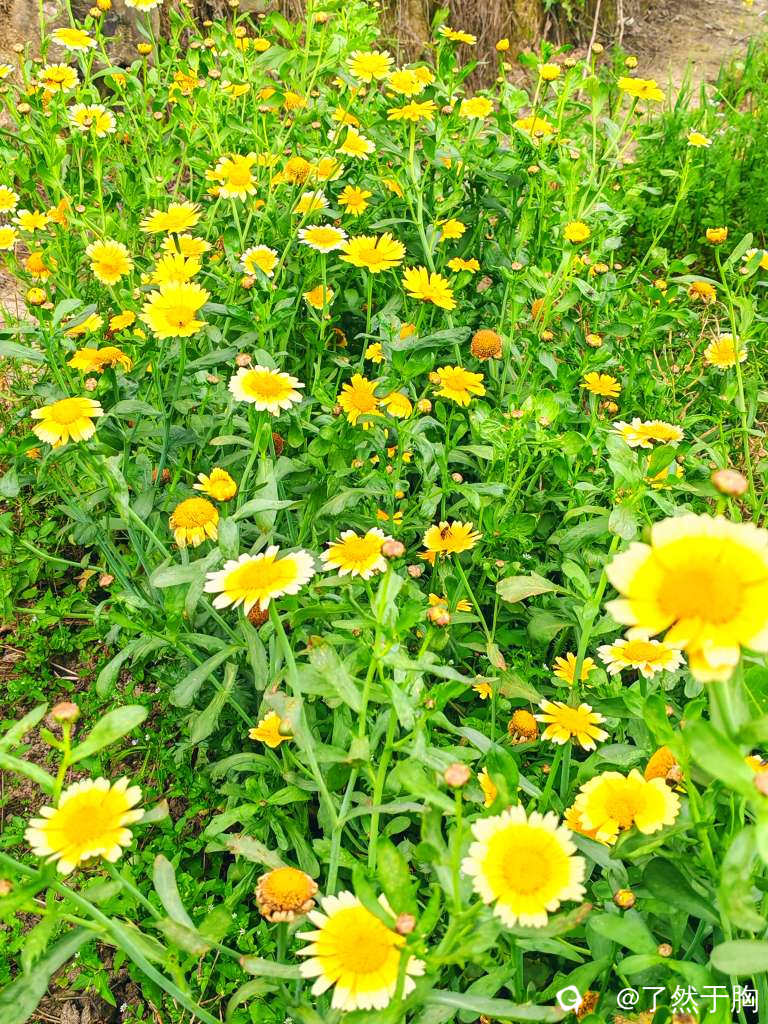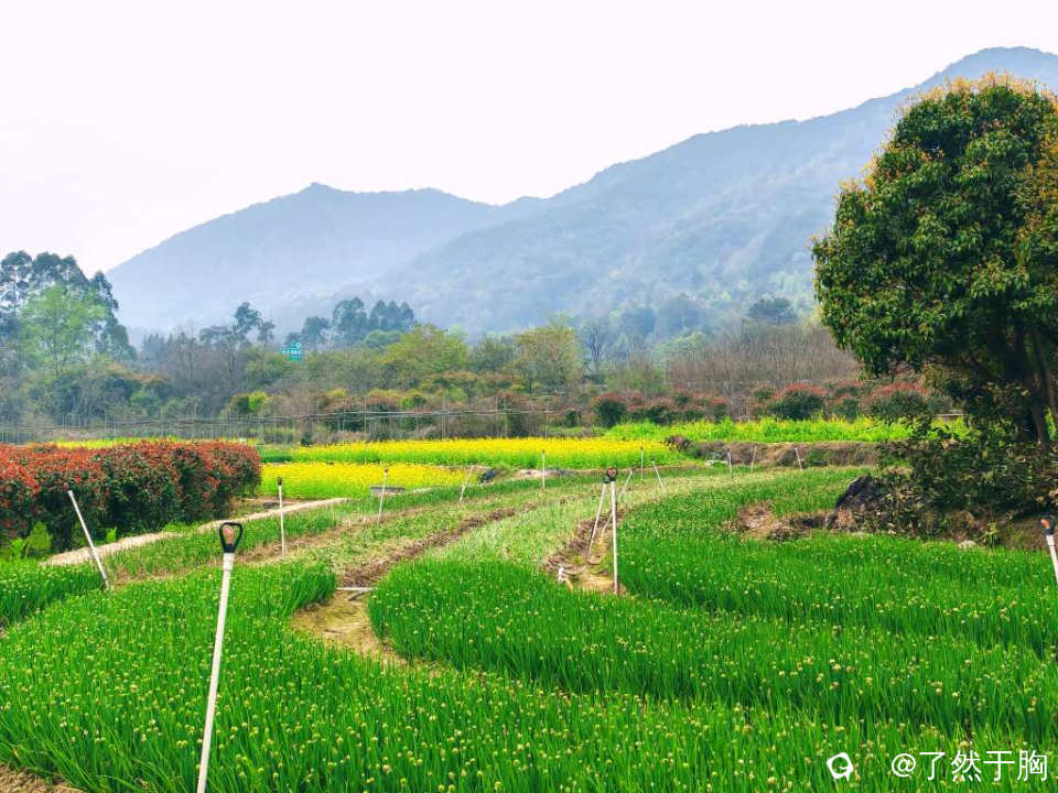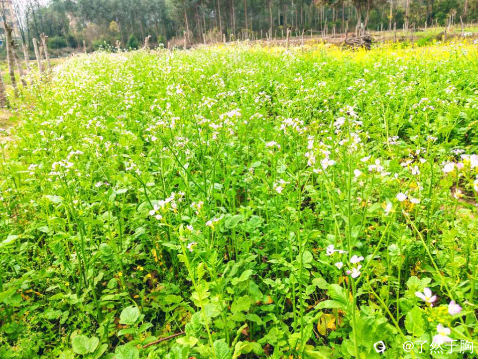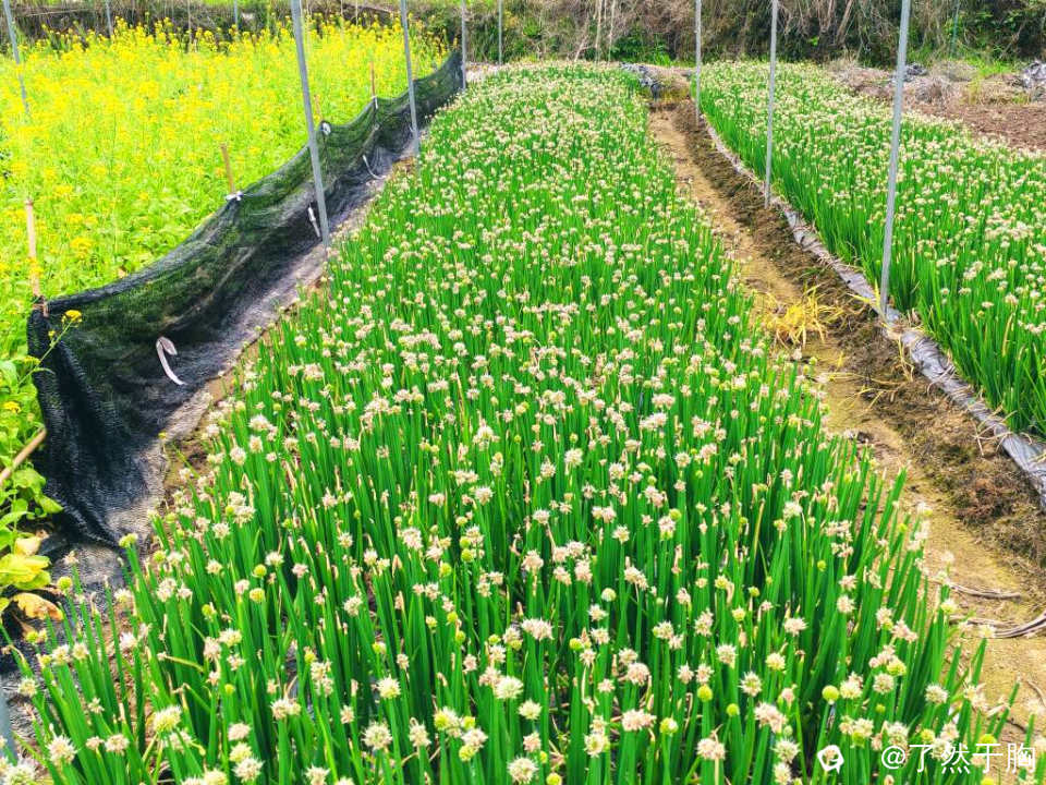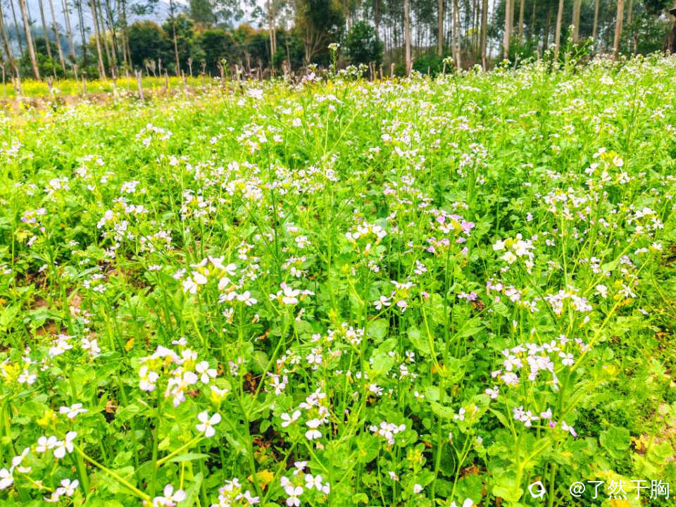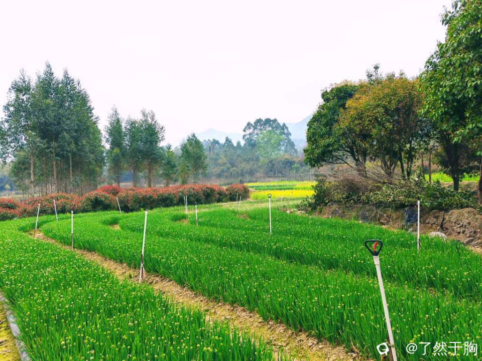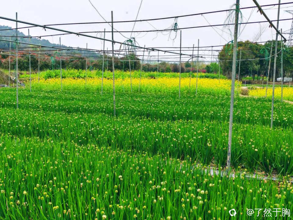 田野里,菜地上,葱花,油菜花,茹菜花,色彩斑斓。饲料草,碧绿茂盛。人行其间,赏心悦目。