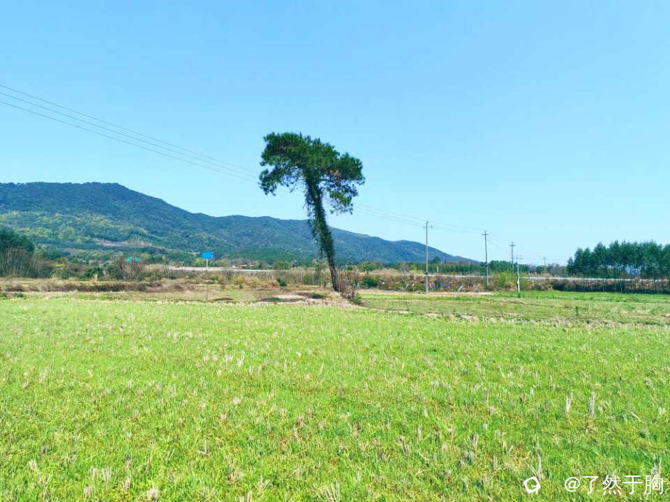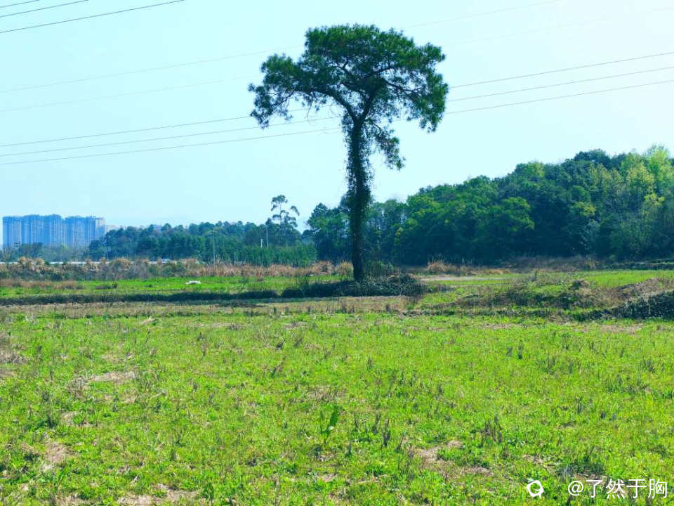 荒地上的野草,青嫩成片,成为初春时节的天然牧场。而那广阔田畴中昂首耸立的一棵孤松,则构成了一幅别具一格的独美图。