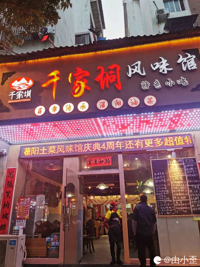 去年差不多这个时间,去千家峒风味馆喝油茶,真是座无虚席。今天再次打卡,门口没有那么多顾客了,原来生意太火爆,老板又在店铺后面租了排地方,赶脚原来是生意红红火火,更上一层楼!