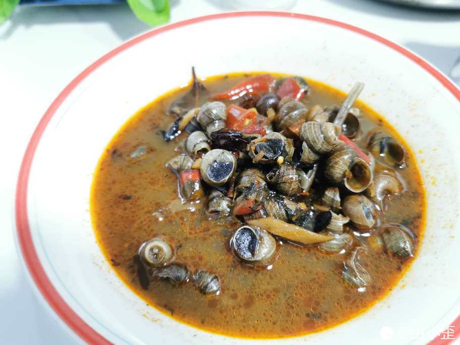 紫苏闷石螺,微辣,嗦得满嘴冒油,火辣辣的,越辣越想嗦。