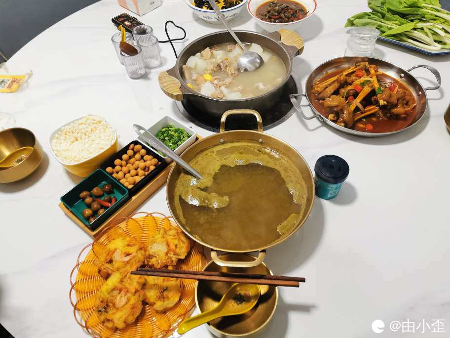 这家饭店是一茶锅一茶锅再倒入大锅里面