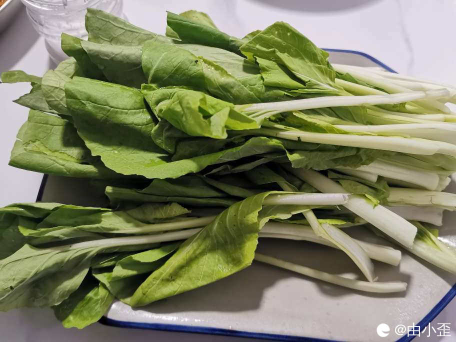 时令蔬菜,烫在土鸡炖萝卜里面吃,荤素搭配,营养好帮手。