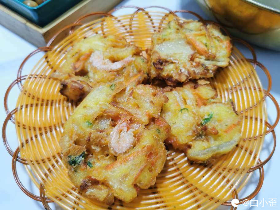 炸虾饼,家乡小时候的味道,上小学时一个星期零花钱能买上两次,边走边吃,校服袖子都是油腥留下的点点印记。